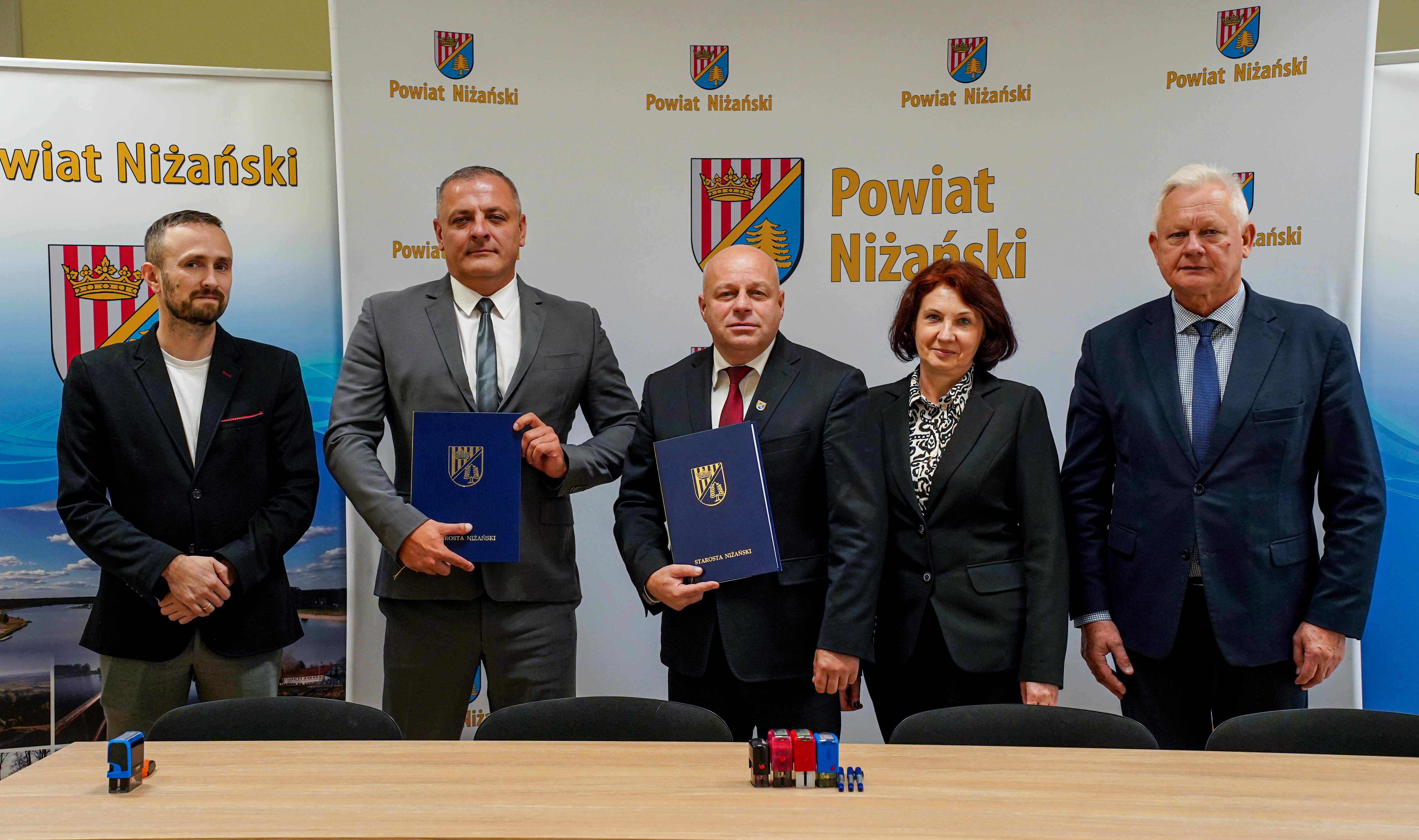 Umowę na realizację powyższego zadania podpisali Starosta Niżański Robert Bednarz i Wicestarosta Józef Sroka przy kontrasygnacie Skarbnika Powiatu Marii Bednarz oraz Przemysław Żyndul – pełnomocnik Wykonawcy, w obecności Głównego specjalisty ds. Informatyki w Wydziale Organizacji, Spraw Obronnych i Zarządzania Kryzysowego Jarosława Zalewskiego.
