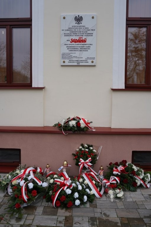 Następnie uczestnicy udali się pod tablicę pamiątkową poświęconą działaczkom NSZZ „Solidarność”, internowanym podczas stanu wojennego w byłym Areszcie Śledczym w Nisku. W imieniu społeczności Powiatu wiązanki kwiatów złożyły: delegacje samorządu, szkół i instytucji społecznych.