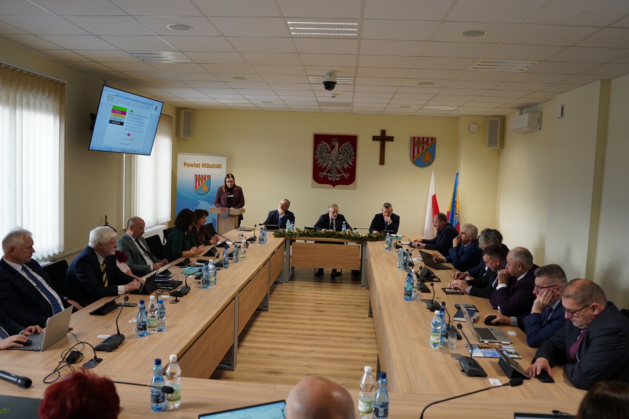 Dnia 30 grudnia 2025 r. w sali narad Starostwa Powiatowego w Nisku, odbyła się XVIII Sesja Rady Powiatu Niżańskiego, zwołana przez Przewodniczącego Rady Powiatu Niżańskiego Sylwestra Daśko.