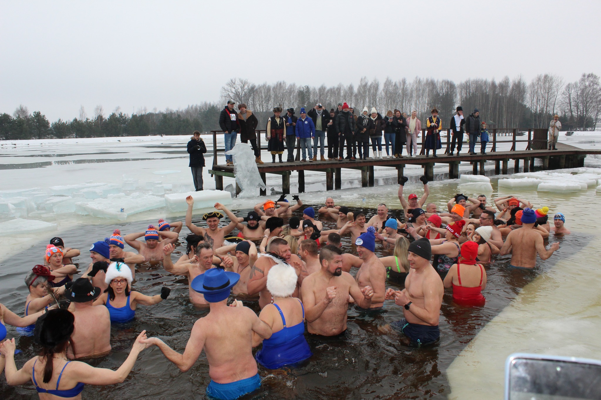 W zimowej aurze oraz w barwnych strojach w stylu chłopskim i szlacheckim, uczestnicy wzięli udział we wspólnej rozgrzewce i morsowaniu, pokazując, że dobra energia skutecznie pokonuje niskie temperatury.