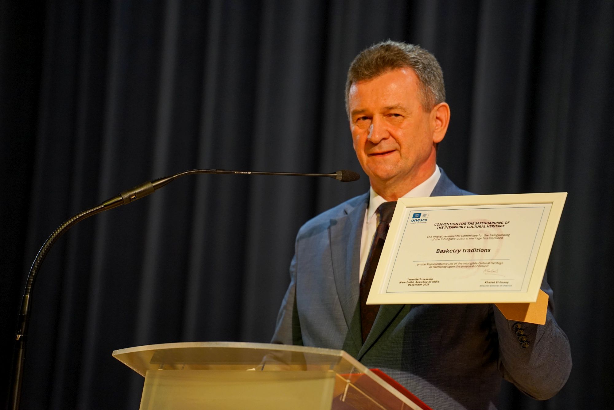 – Gratuluję wpisu rudnickiego plecionkarstwa na Reprezentatywną Listę Niematerialnego Dziedzictwa Kulturowego UNESCO i dziękuję wszystkim, którzy się do tego przyczynili. Wasze dłonie, zręczność i serce włożone w pracę sprawiły, że lokalne rzemiosło zyskało światowe uznanie – powiedział Starosta Niżański Robert Bednarz.