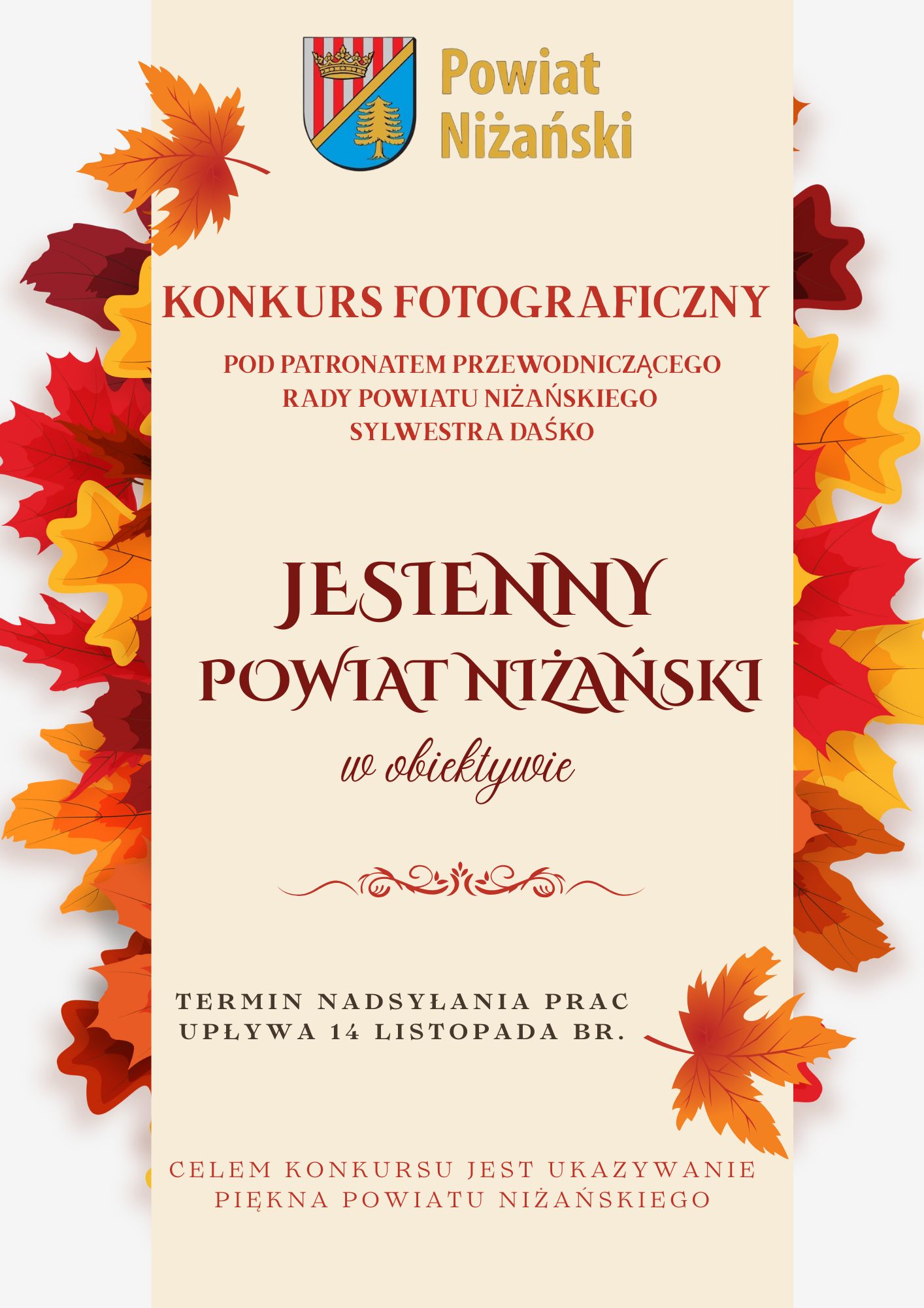 Jesień to czas niezwykłych barw i nastrojów, dlatego Powiat Niżański zaprasza wszystkich sympatyków fotografii do udziału w Konkursie Fotograficznym „JESIENNY POWIAT NIŻAŃSKI W OBIEKTYWIE”.