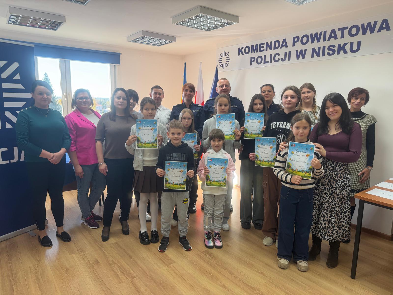 W Komendzie Powiatowej Policji w Nisku odbyło się uroczyste rozstrzygnięcie konkursu plastycznego pod hasłem „Bezpieczne wakacje 2025”. Komisja konkursowa wyłoniła najciekawsze prace wykonane przez dzieci i młodzież ze szkół z terenu powiatu niżańskiego. Najlepsze z nich będą reprezentować Powiat w etapie wojewódzkim.
