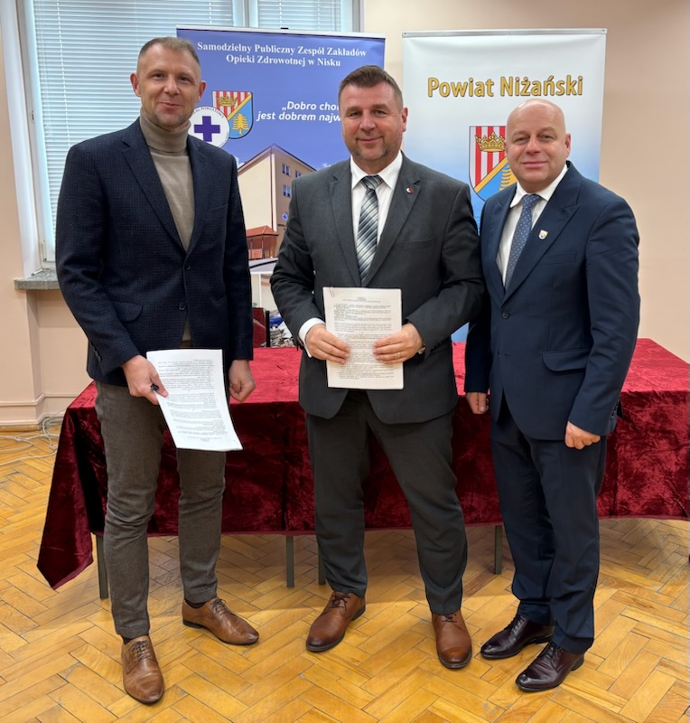 Dnia 4 listopada 2025 roku w Samodzielnym Publicznym Zespole Zakładów Opieki Zdrowotnej w Nisku została podpisana umowa na realizację zadania pod nazwą: „Zakup karetki sanitarno-transportowej wraz z wyposażeniem dla Samodzielnego Publicznego Zespołu Zakładów Opieki Zdrowotnej w Nisku”.