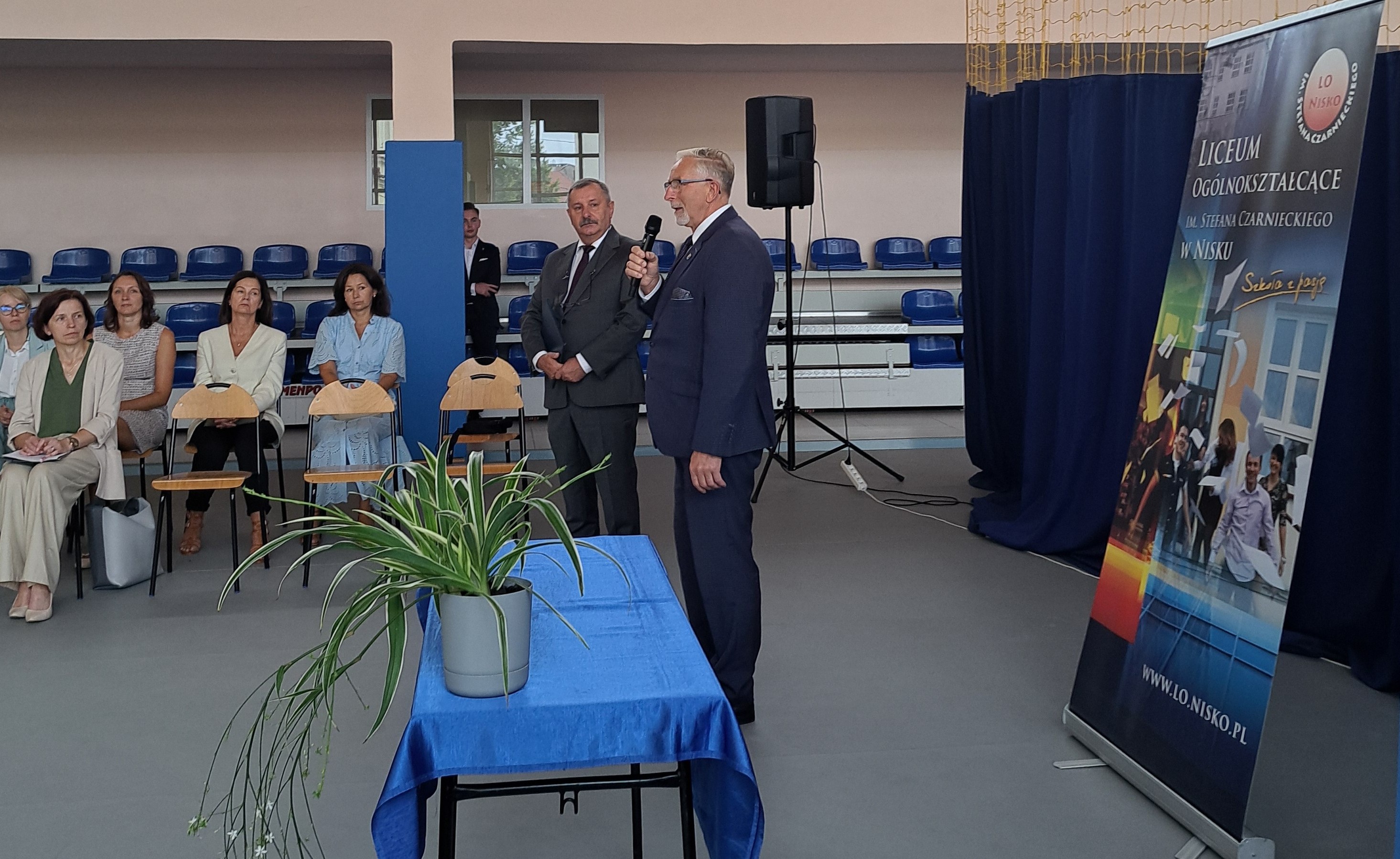 W uroczystościach rozpoczęcia nowego roku szkolnego uczestniczyli przedstawiciele Powiatu Niżańskiego w osobach: Starosta Niżański Robert Bednarz – w Regionalnym Centrum Edukacji Zawodowej w Nisku, Wicestarosta Józef Sroka – w Specjalnym Ośrodku Szkolno-Wychowawczym w Rudniku nad Sanem, Przewodniczący Rady Powiatu Niżańskiego Sylwester Daśko – w Liceum Ogólnokształcącym im. Stefana Czarnieckiego w Nisku, Członek Zarządu Powiatu Niżańskiego Magdalena Hasiak – w Szkole Specjalnej Przysposabiającej do Pracy w Ulanowie, Członek Zarządu Powiatu Niżańskiego Adam Mach – w Zespole Szkół im. gen. Władysława Sikorskiego oraz Naczelnik Wydziału Edukacji, Spraw Społecznych i Promocji Anna Orzoł – w Zespole Szkół w Jeżowem im. ks. Stanisława Staszica.