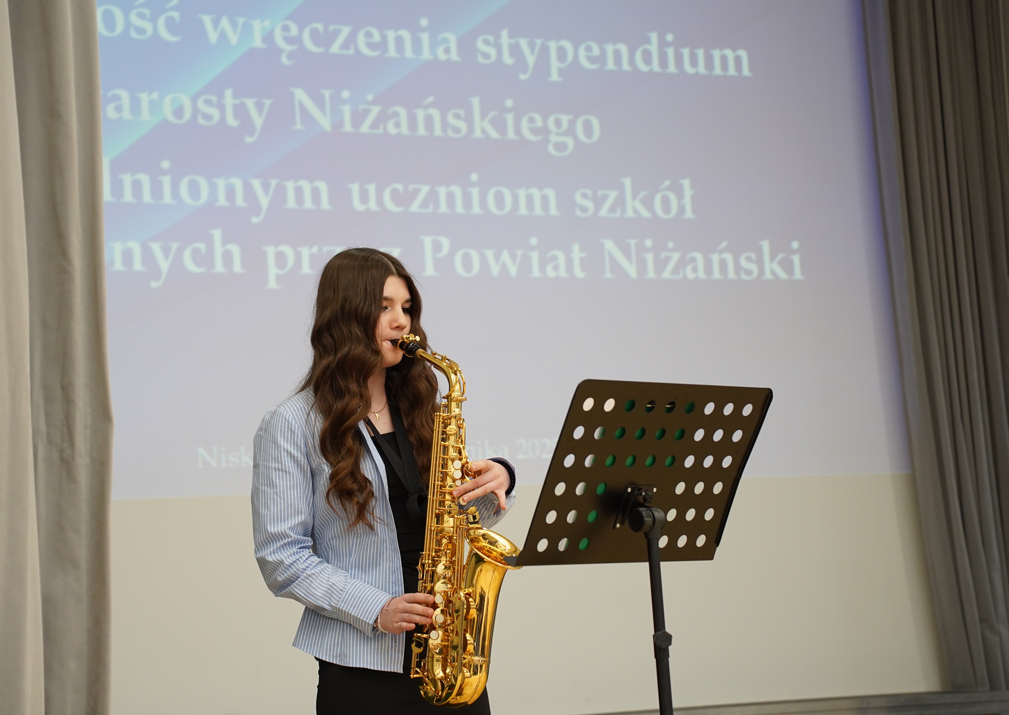 Po rozdaniu stypendiów wystąpili uczniowie LO w Nisku Kacper Drąg i Grzegorz Zalewski w utworze Marka Grechuty pt. „Będziesz moją Panią”.