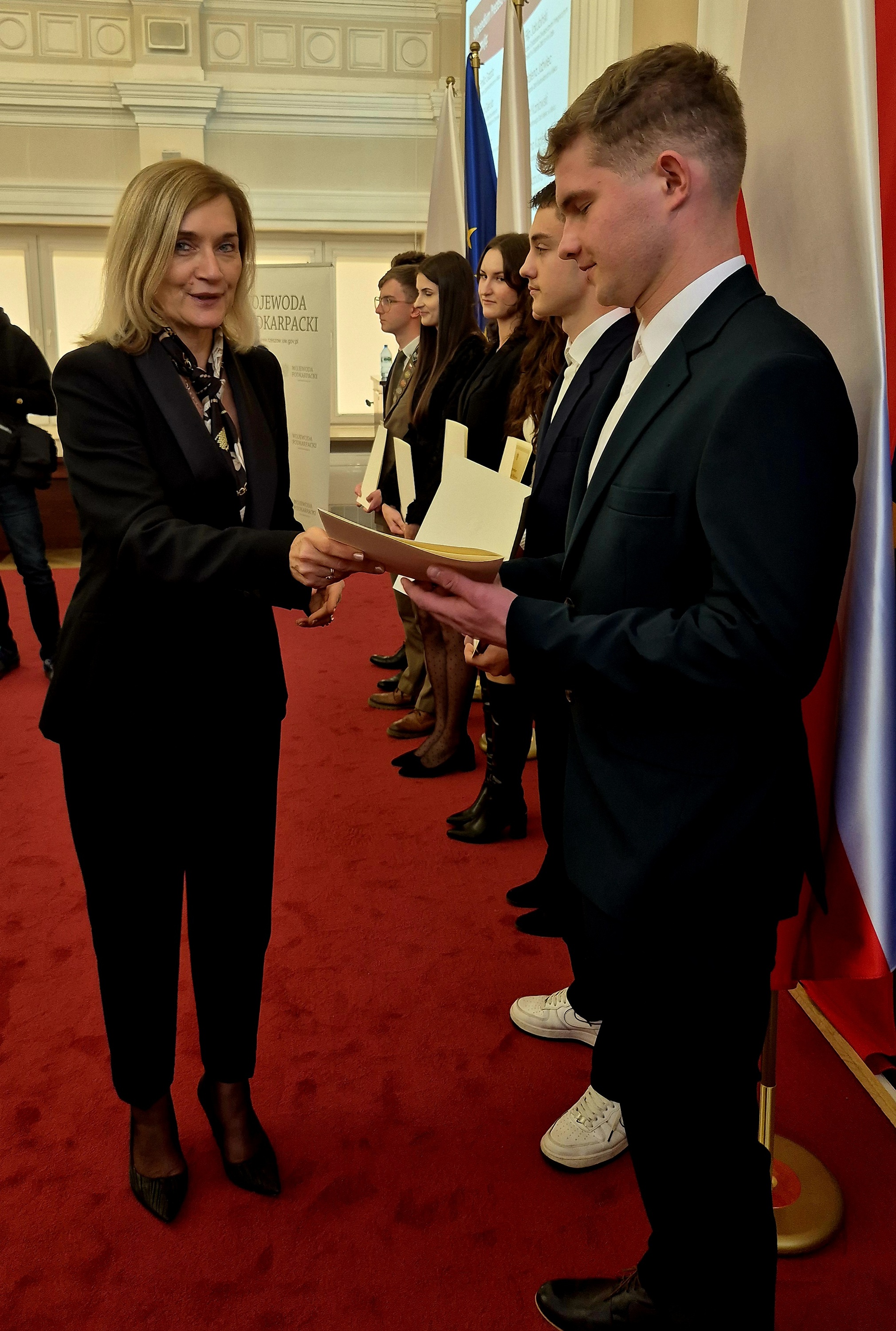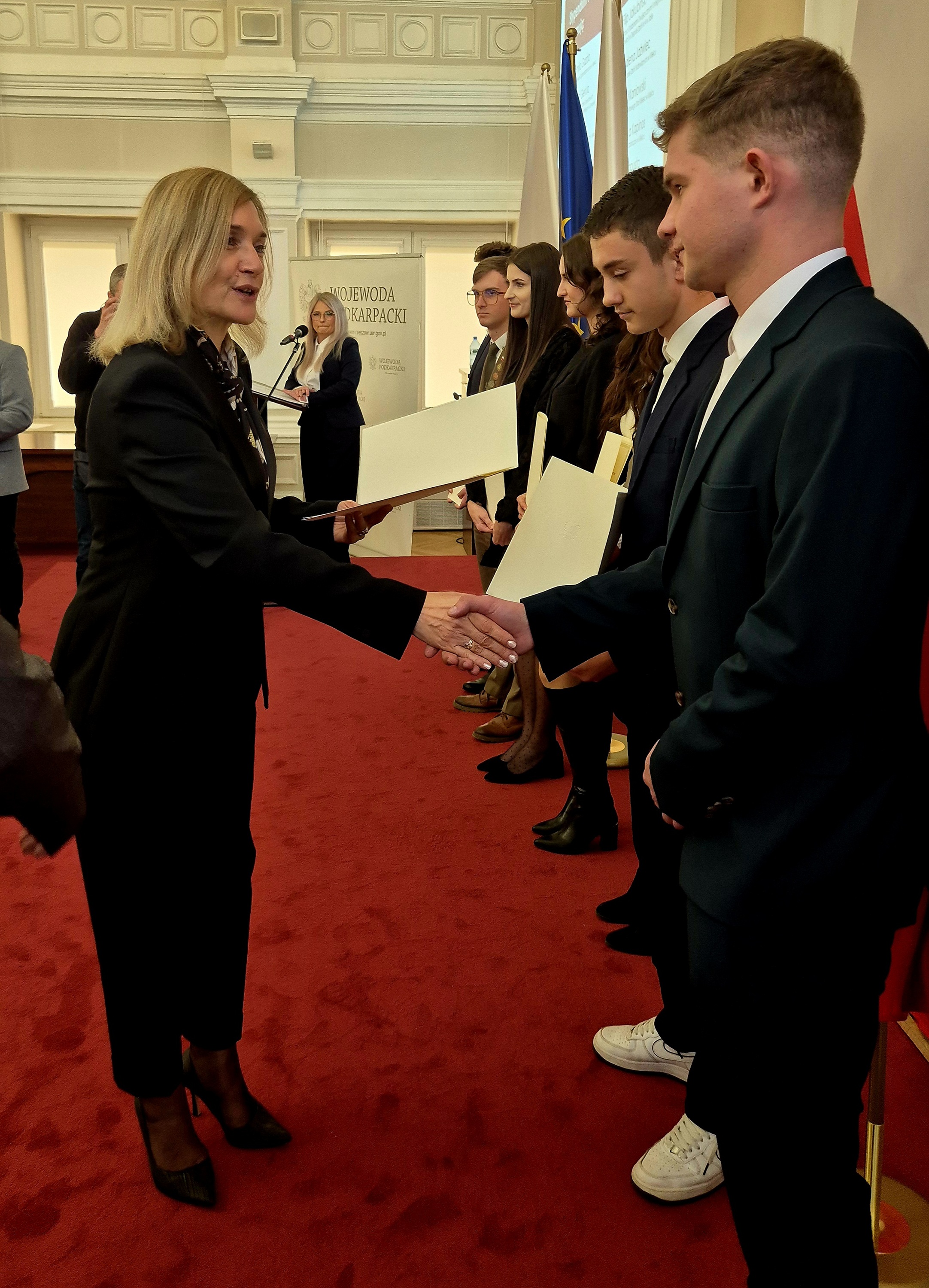 Uroczystość wręczenia Stypendiów Prezesa Rady Ministrów odbyła się 4 grudnia w Sali Kolumnowej im. Ojców Niepodległości Podkarpackiego Urzędu Wojewódzkiego w Rzeszowie. To wyjątkowy moment zarówno dla uczniów, jak i całej społeczności szkolnej, pokazujący, jak wiele znaczą systematyczna praca, ambicja i talent.