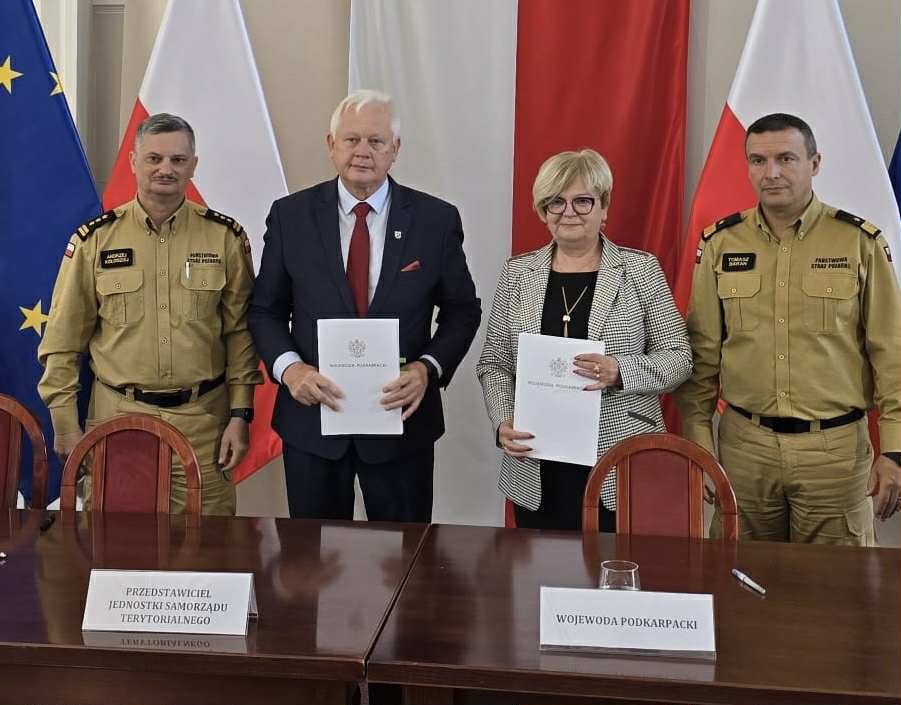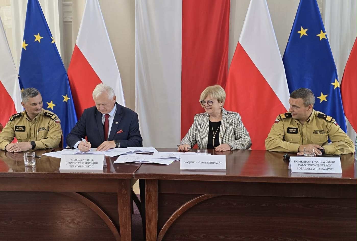 Ostateczne powierzenie zadania oraz przekazanie środków finansowych pochodzących z dotacji celowej dla Komendy Powiatowej PSP w Nisku nastąpiło poprzez podpisanie umowy w Starostwie Powiatowym w Nisku. W podpisaniu umowy uczestniczyli Starosta Niżański Robert Bednarz, Wicestarosta Niżański Józef Sroka, Komendant Powiatowy PSP w Nisku st. bryg. Andrzej Kołodziej oraz Inspektor ds. Zarządzania Kryzysowego, OC Michał Piędel.