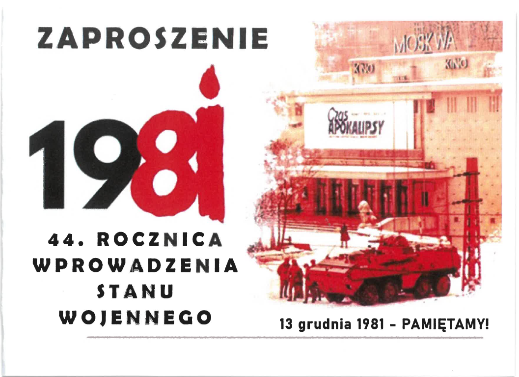 Starosta Niżański, Przewodniczący Rady Powiatu Niżańskiego oraz Dyrektor Regionalnego Centrum Edukacji Zawodowej w Nisku zapraszają na uroczyste obchody 44. Rocznicy Wprowadzenia Stanu Wojennego, które odbędą się 12 grudnia 2025 r.