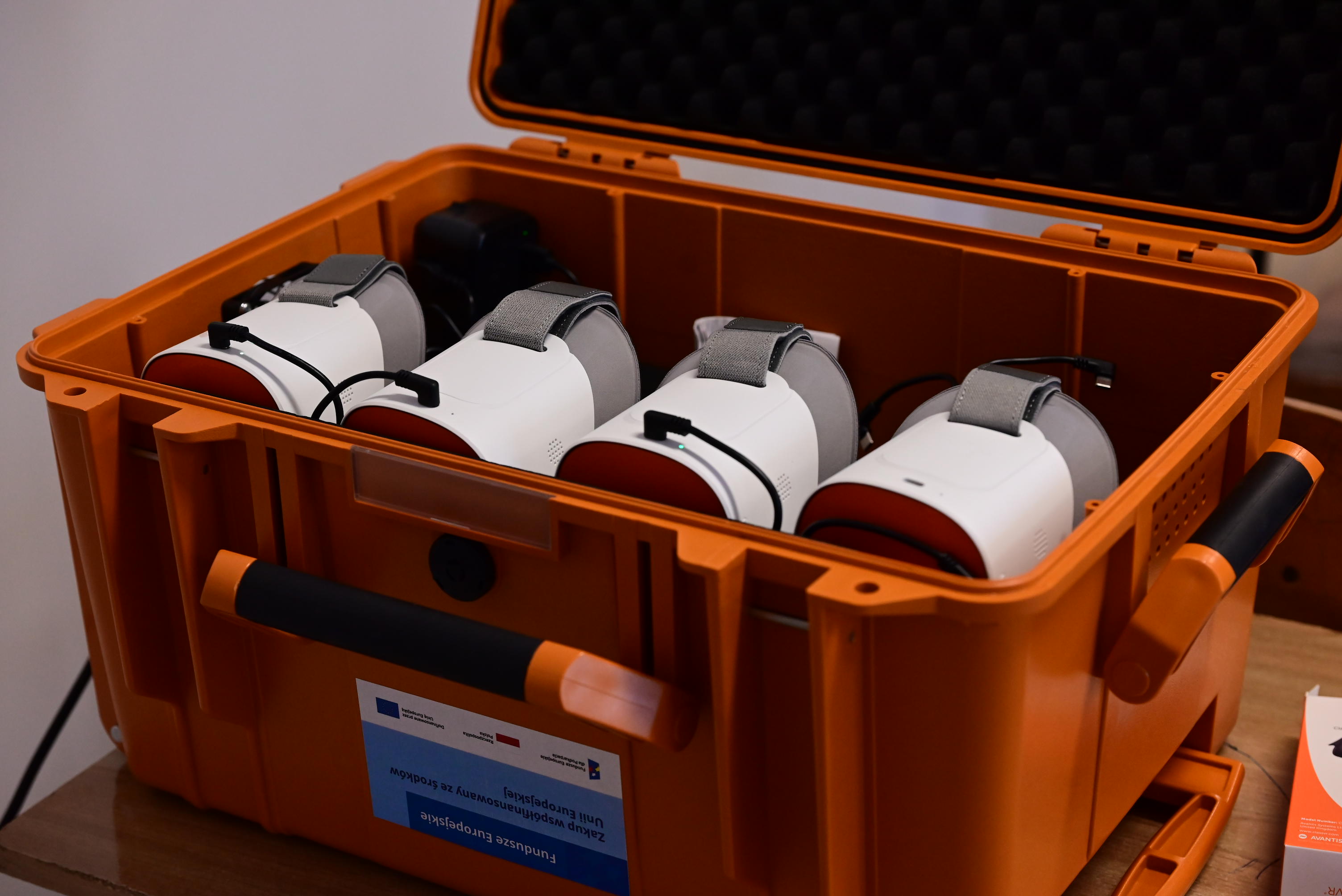 W ramach realizacji projektu Zespół Szkół w Jeżowem wzbogacił się o 2 zestawy, każdy po 8 szt., okularów VR wraz z oprzyrządowaniem i oprogramowaniem umożliwiającym zarządzanie zestawem okularów. Łączna wartość tych zakupów to 68.092,30 zł.