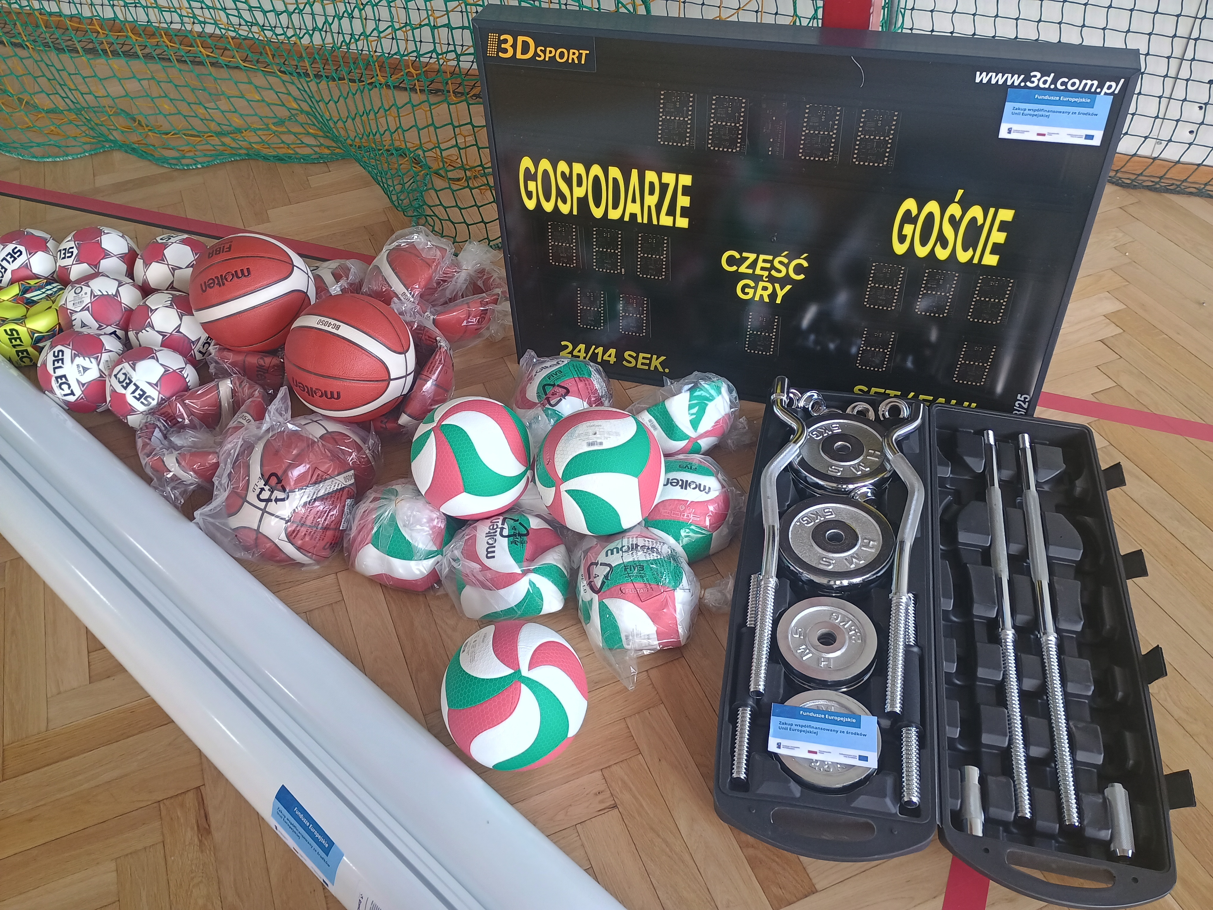W ramach realizacji projektu Zespół Szkół w Jeżowem wzbogacił się o nowoczesną infrastrukturę sportową – do szkoły zakupiono m. in. ręczną tablicę wyników, piłki do siatkówki, do koszykówki, do piłki ręcznej, bramki do piłki ręcznej, odskocznię gimnastyczną oraz elektroniczną tablicę wyników. Łączna wartość zakupów to 22.765 zł.