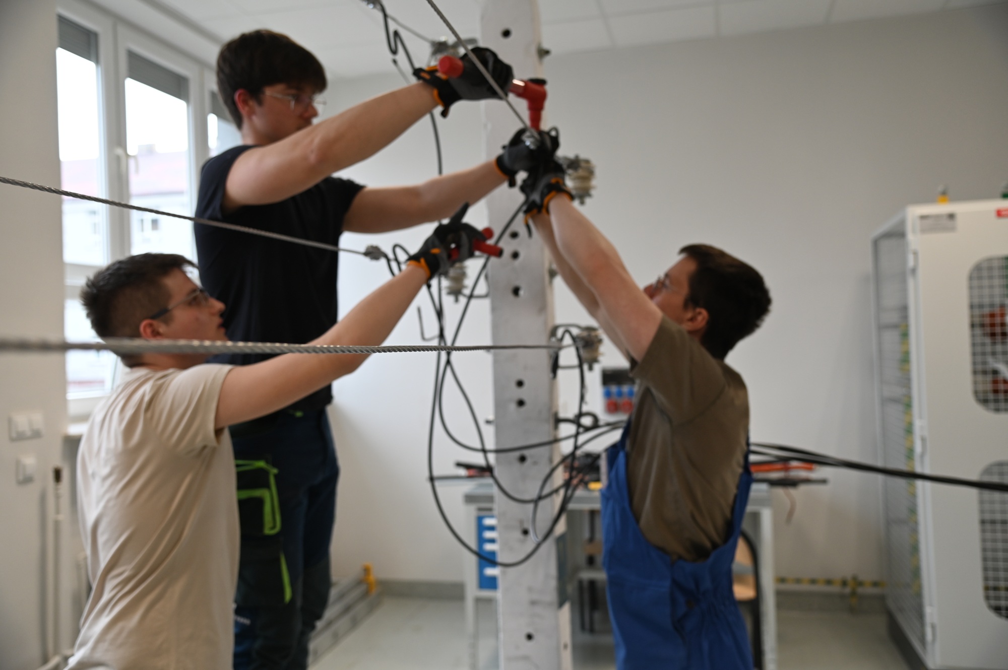 Zadanie realizowane było w warunkach pracowni dydaktycznej odwzorowującej rzeczywiste elementy sieci elektroenergetycznej, co znacząco podniosło poziom trudności i realizmu. Ocenie podlegały nie tylko aspekty techniczne, ale również organizacja pracy, estetyka wykonania oraz przestrzeganie zasad bezpieczeństwa.
