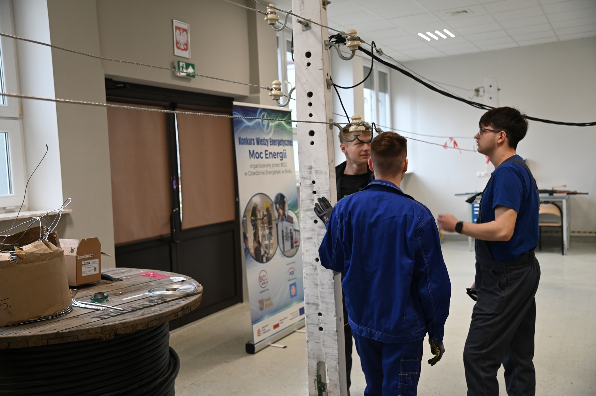 Finał konkursu rozegrano w ciągu dwóch dni rywalizacji – w dniach 26 i 27 marca br. Każdego dnia do zmagań przystępowały trzy zespoły, które musiały zmierzyć się z zadaniem praktycznym polegającym na wykonaniu przyłącza za pomocą kabli ASXSN na linii niskiego napięcia. Po wcześniejszej prezentacji prawidłowego przyłączenia przewodu przez ekspertów z PGE Dystrybucja S.A., uczestnicy samodzielnie realizowali zadanie obejmujące m.in. montaż elementów, zawieszenie i regulację przewodów, identyfikację żył oraz wykonanie trwałych i bezpiecznych połączeń.
