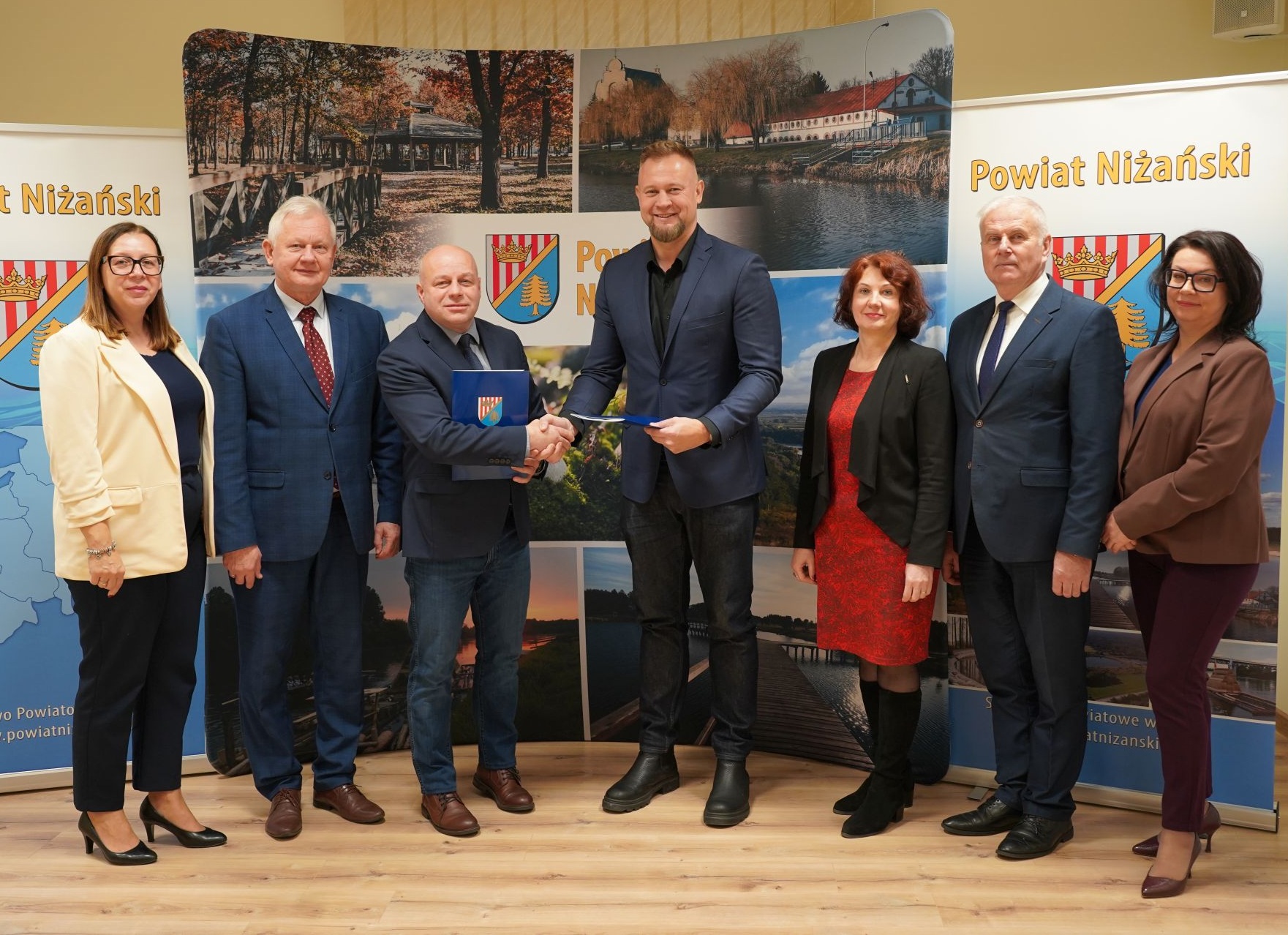 Umowę z ramienia Lidera projektu – Powiatu Niżańskiego podpisali: Starosta Niżański Robert Bednarz i Wicestarosta Józef Sroka, przy kontrasygnacie Skarbnika Powiatu Marii Bednarz, a w imieniu wykonawcy: Przedsiębiorstwa MOLTER Sp. z o.o. z Głogowa Małopolskiego: Prezes Zarządu – Łukasz Molter.