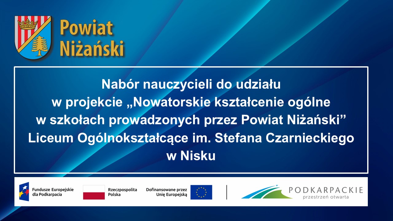 NABÓR NAUCZYCIELI DO UDZIAŁU W PROJEKCIE  „NOWATORSKIE KSZTAŁCENIE OGÓLNE W SZKOŁACH PROWADZONYCH PRZEZ POWIAT NIŻAŃSKI” LICEUM OGÓLNOKSZTAŁCĄCE IM. STEFANA CZARNIECKIEGO W NISKU