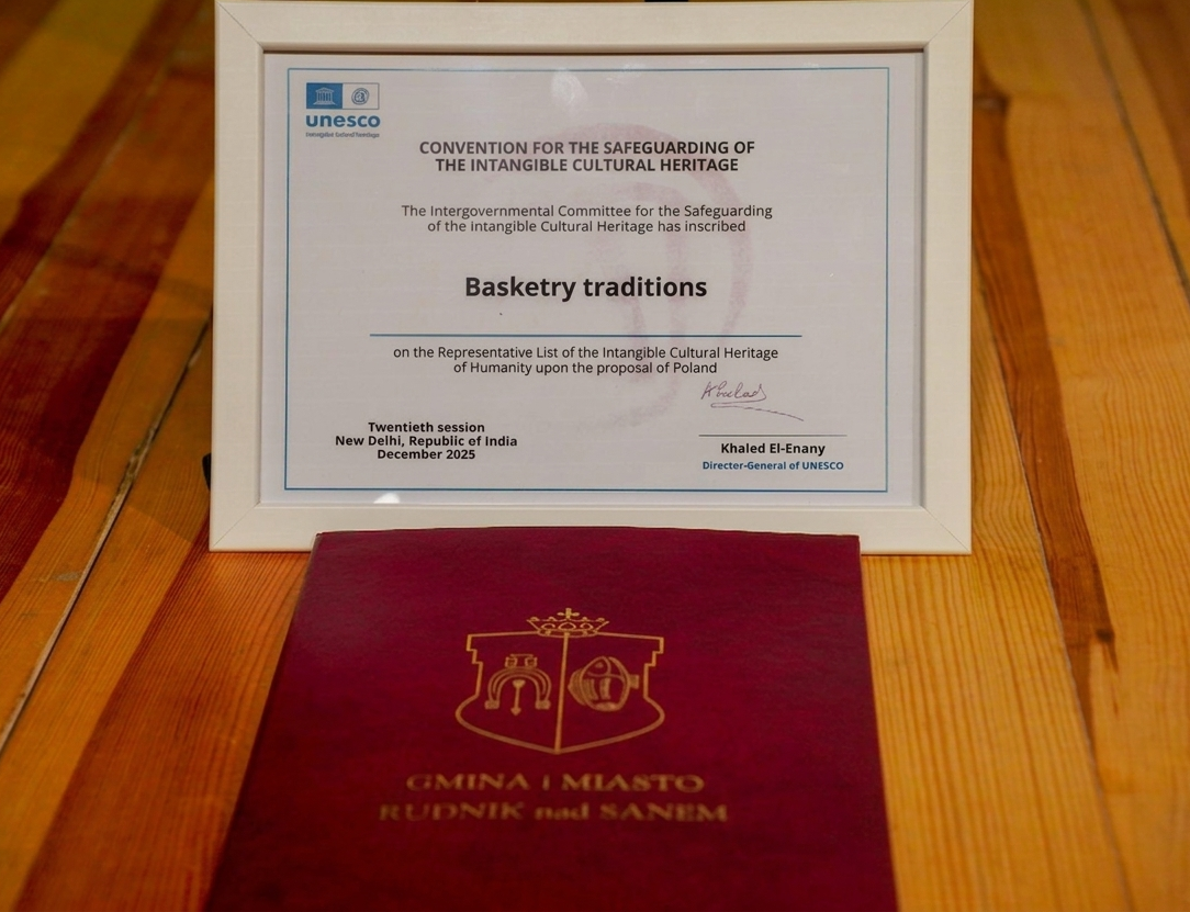 Dnia 6 marca 2026 r. w sali widowiskowej Niżańskiego Centrum Kultury w Nisku, odbyła się XX Sesja Rady Powiatu Niżańskiego, zwołana przez Przewodniczącego Rady Powiatu Niżańskiego Sylwestra Daśko. Po otwarciu obrad przez Przewodniczącego Rady oraz powitaniu zaproszonych gości przez Starostę Niżańskiego Roberta Bednarza, Burmistrz Gminy i Miasta Rudnik nad Sanem Tadeusz Handziak oraz Dyrektor Miejskiego Ośrodka Kultury Anna Straub uroczyście zaprezentowali wpis plecionkarstwa polskiego na Listę Reprezentatywną Niematerialnego Dziedzictwa Kulturowego Ludzkości UNESCO.