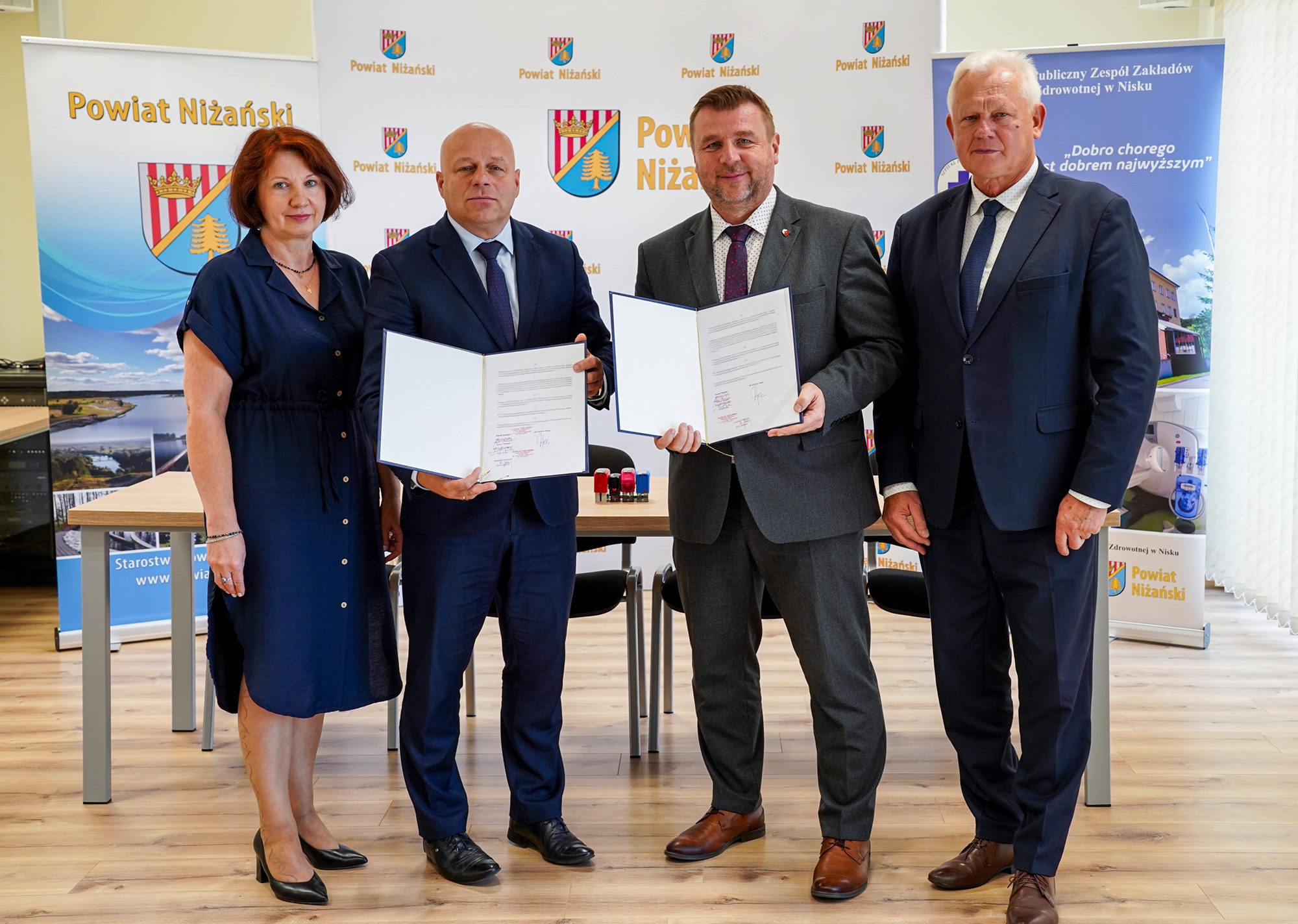 Powiat Niżański, wychodząc naprzeciw potrzebom Szpitala Powiatowego im. PCK w Nisku, po raz kolejny udzielił pomocy finansowej Samodzielnemu Publicznemu Zakładowi Opieki Zdrowotnej w Nisku, przeznaczając kwotę 670 tys. zł na zakup nowoczesnej karetki sanitarno-transportowej wraz z wyposażeniem. Umowa dotacji została zawarta w dniu 26 sierpnia 2025 r., którą podpisali: Starosta Niżański Robert Bednarz, Wicestarosta Józef Sroka oraz Dyrektor SPZZOZ w Nisku Paweł Tofil, przy kontrasygnacie Skarbnika Powiatu Marii Bednarz.