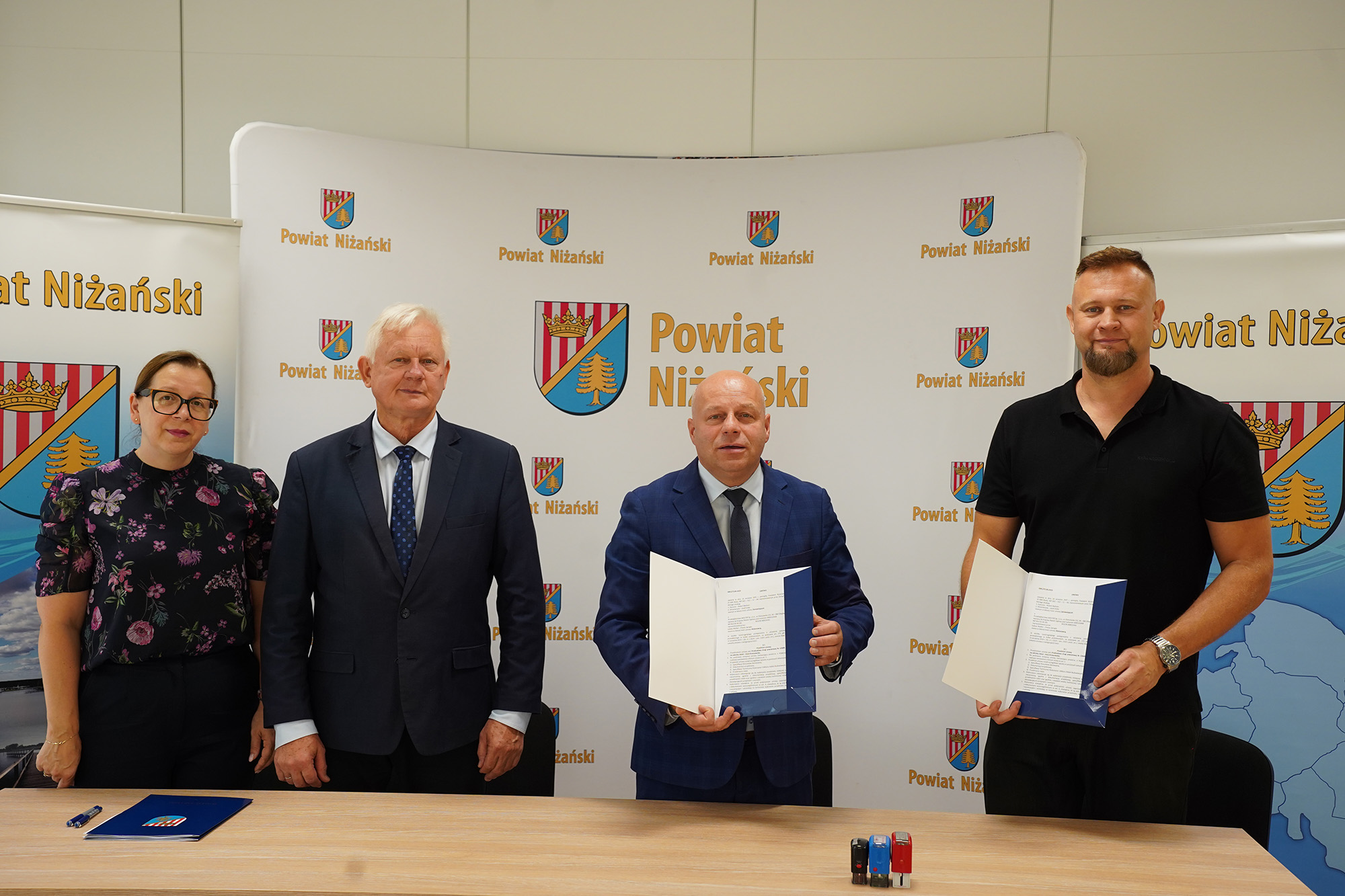 Umowę na realizację powyższego zadania podpisali Starosta Niżański Robert Bednarz i Wicestarosta Józef Sroka oraz Łukasz Molter – Prezes Firmy Molter Sp. z o.o., w obecności Naczelnika Wydziału Gospodarki Mieniem Powiatu Jadwigi Maluga.