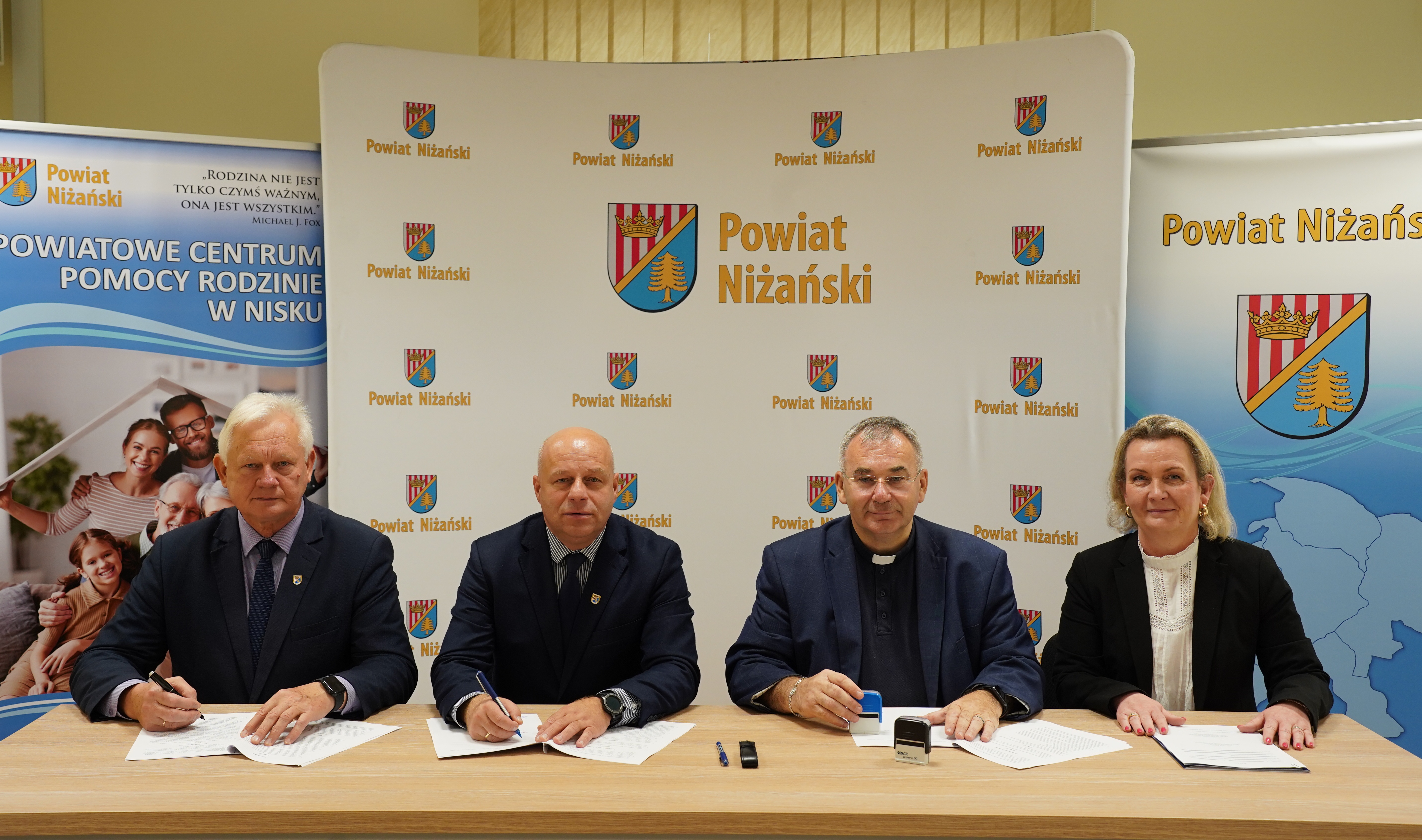 Z ramienia Powiatu umowy podpisane zostały przez Starostę Niżańskiego Roberta Bednarza i Wicestarostę Józefa Srokę przy kontrasygnacie Skarbnika Powiatu Marii Bednarz. Przy podpisywaniu umów obecna była Dyrektor Powiatowego Centrum Pomocy Rodzinie w Nisku Marta Ciosmak, jednostki odpowiedzialnej za realizację zadań.