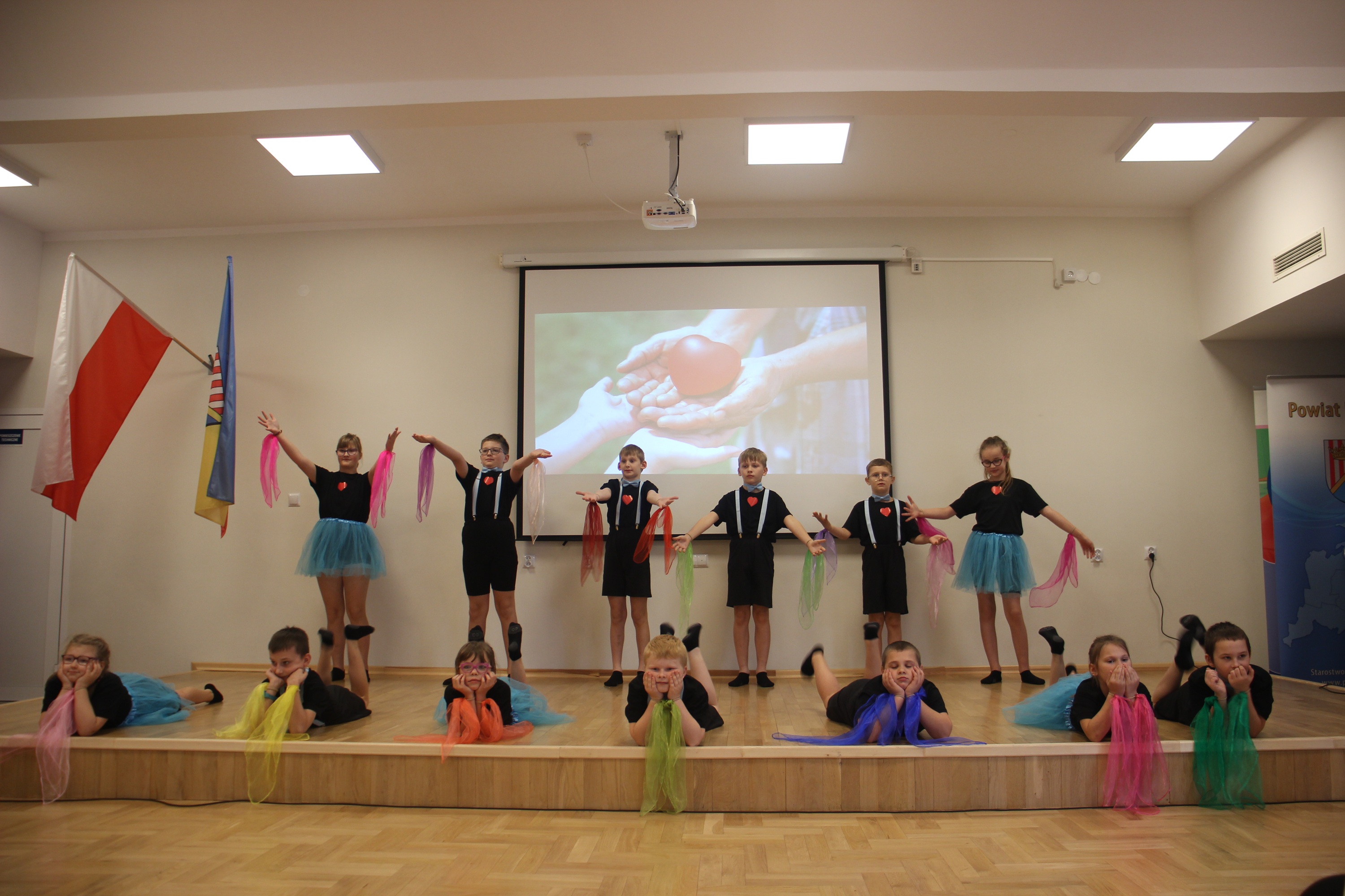 Po powitaniu odbyła się część artystyczna przygotowana przez uczniów. Jako pierwsi wystąpili uczniowie klas I–III, którzy zaprezentowali radosną piosenkę o dobrym sercu i życzliwości wobec innych ludzi. Kolorowe chustki, uśmiechy i entuzjazm najmłodszych stworzyły ciepły i pogodny nastrój. Następnie Lena, uczennica klasy siódmej, zaprezentowała pełne emocji wykonanie piosenki „Małe szczęścia”, które poruszyło wszystkich obecnych.