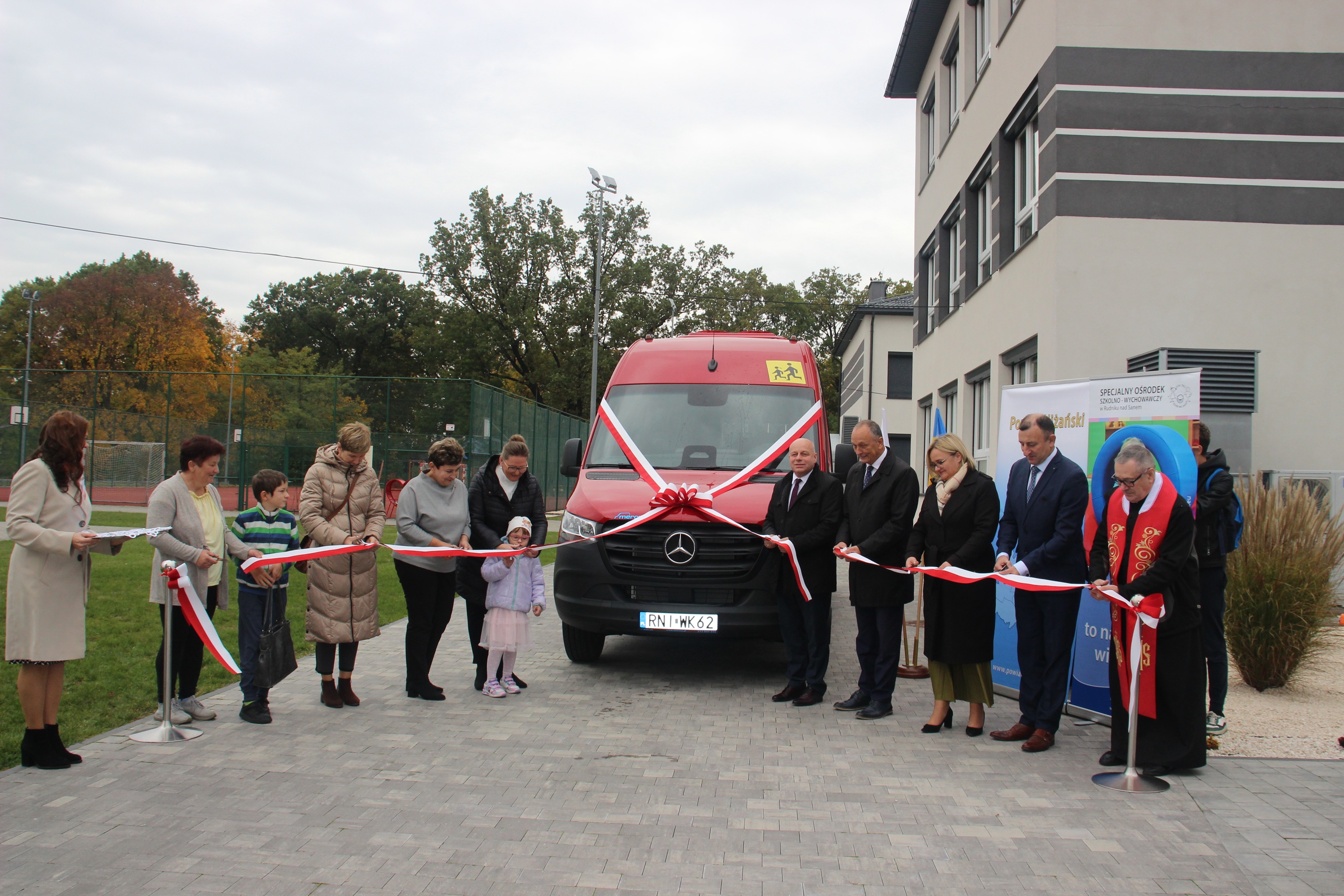 W piątek, 17 października 2025 roku, w Specjalnym Ośrodku Szkolno-Wychowawczym w Rudniku nad Sanem odbyła się uroczystość przekazania 24-osobowego autobusu, który od tej pory będzie służył uczniom i pracownikom placówki. W wydarzeniu wzięli udział m. in. Starosta Niżański Robert Bednarz, Dyrektor Oddziału Podkarpackiego PFRON w Rzeszowie Maciej Szymański oraz Ksiądz Dziekan Stanisław Czachor Proboszcz Parafii Trójcy Świętej w Rudniku nad Sanem.