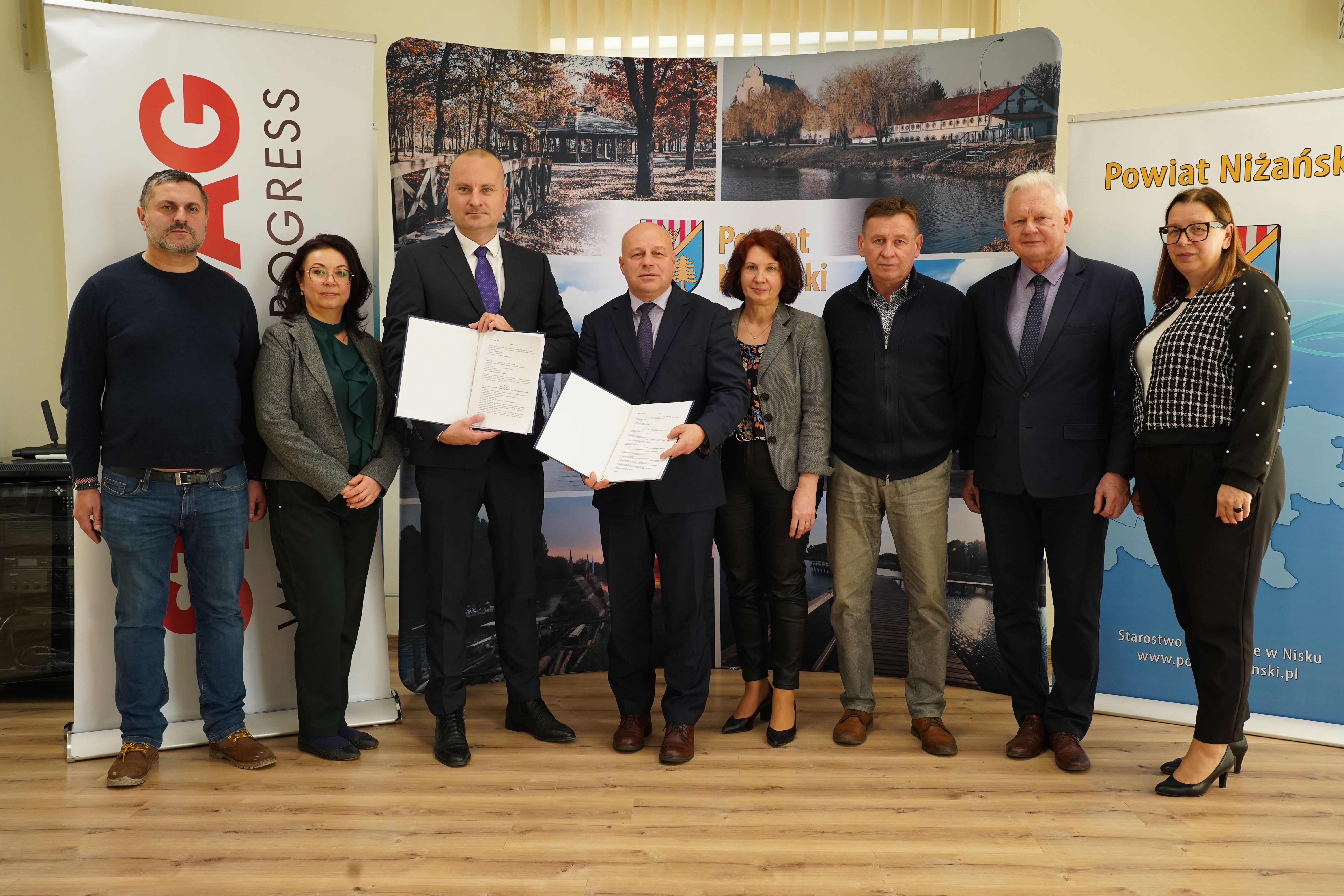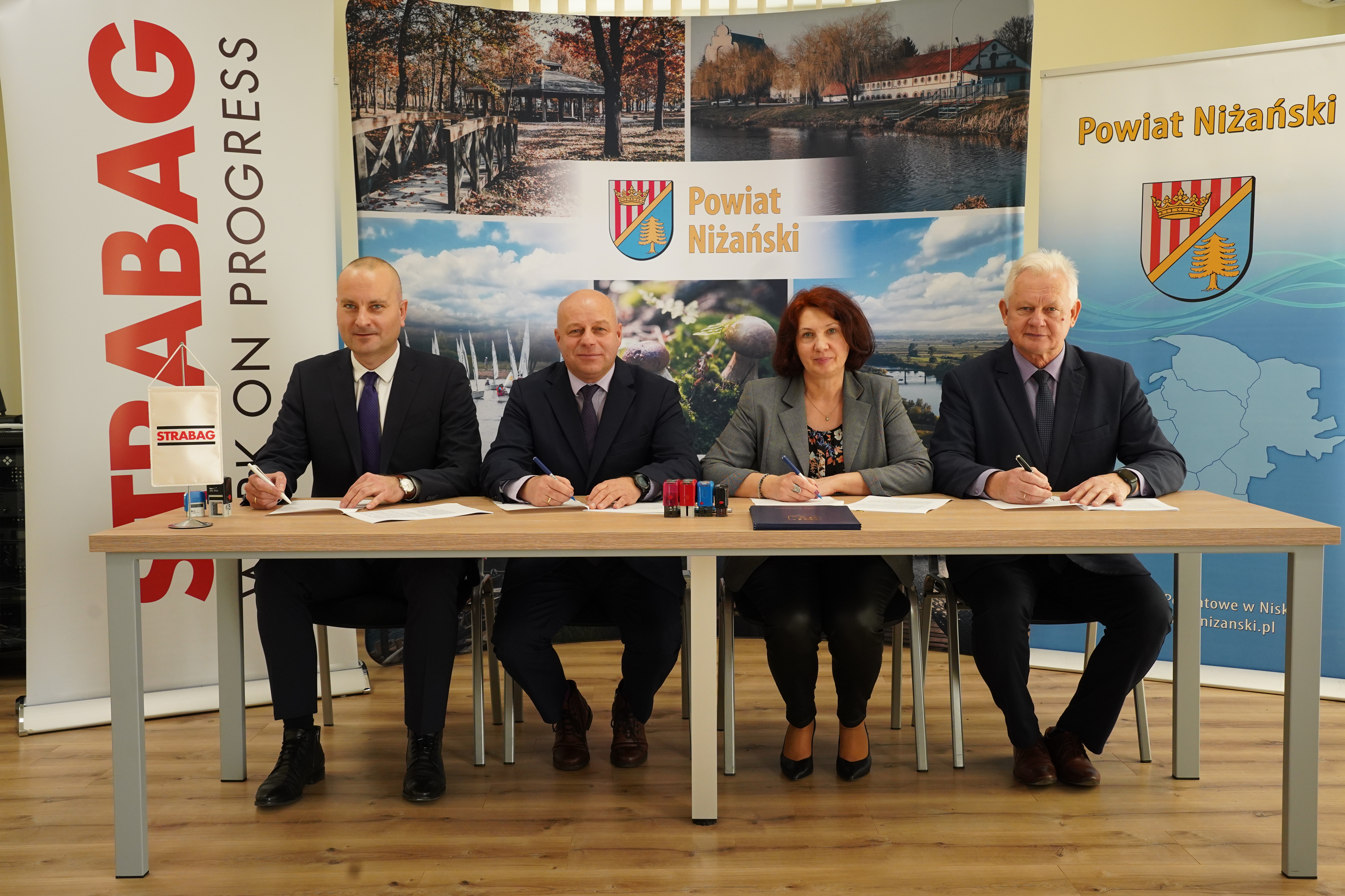 W podpisaniu umowy uczestniczyli również Michał Cebula – Kierownik Budowy, STRABAG Sp. z o.o. Pruszków, Zbigniew Lach – Dyrektor Zarządu Dróg Powiatowych w Nisku, pełniący funkcję Inspektora Nadzoru oraz pracownicy Starostwa Powiatowego w Nisku: Jadwiga Maluga – Naczelnik Wydziału Gospodarki Mieniem Powiatu i Beata Zaręba – Główny Specjalista.
