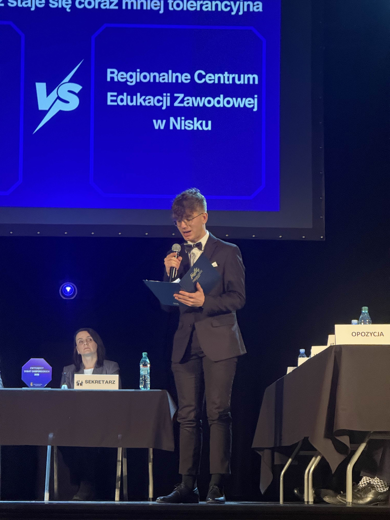 Tematem finałowego starcia była teza: „Współczesna młodzież jest coraz mniej tolerancyjna”. Drużyna naszych uczniów wystąpiła po stronie opozycji, konsekwentnie podważając to stwierdzenie i przedstawiając argumenty świadczące o rosnącej świadomości społecznej, otwartości oraz zaangażowaniu młodych ludzi w sprawy równości i dialogu. Ich wystąpienia były przemyślane, poparte przykładami i danymi, a także skutecznie odpowiadały na zarzuty strony propozycji.