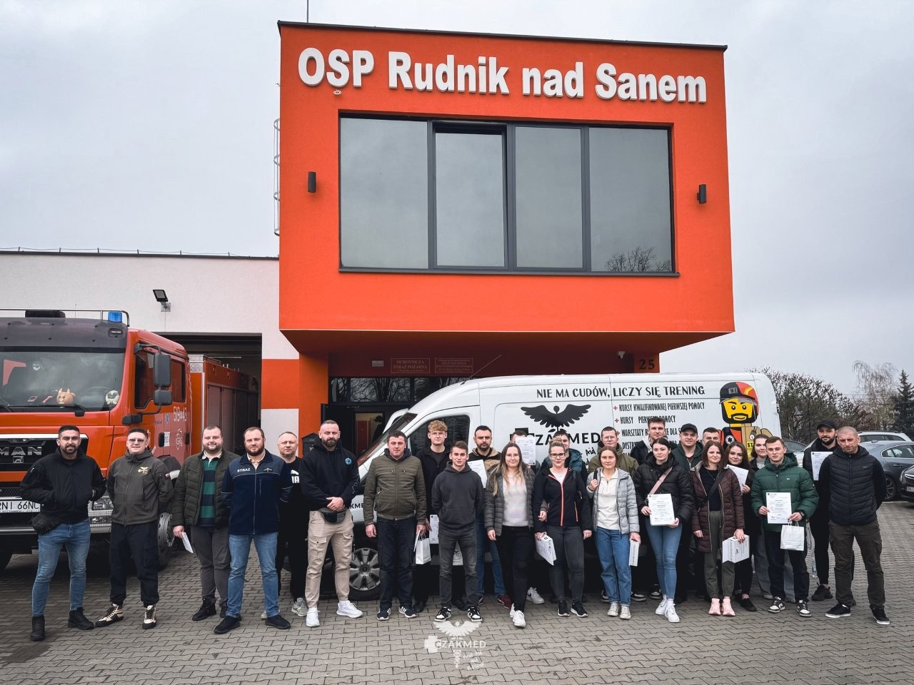 Kurs został przeprowadzony na wysokim poziomie merytorycznym przez firmę CzakMed z Rzeszowa i obejmował zarówno zajęcia teoretyczne, jak i praktyczne. Dodatkowo, w ramach realizacji zadania, przeprowadzono recertyfikację kursu KPP dla 5 druhów z OSP Rudnik nad Sanem.