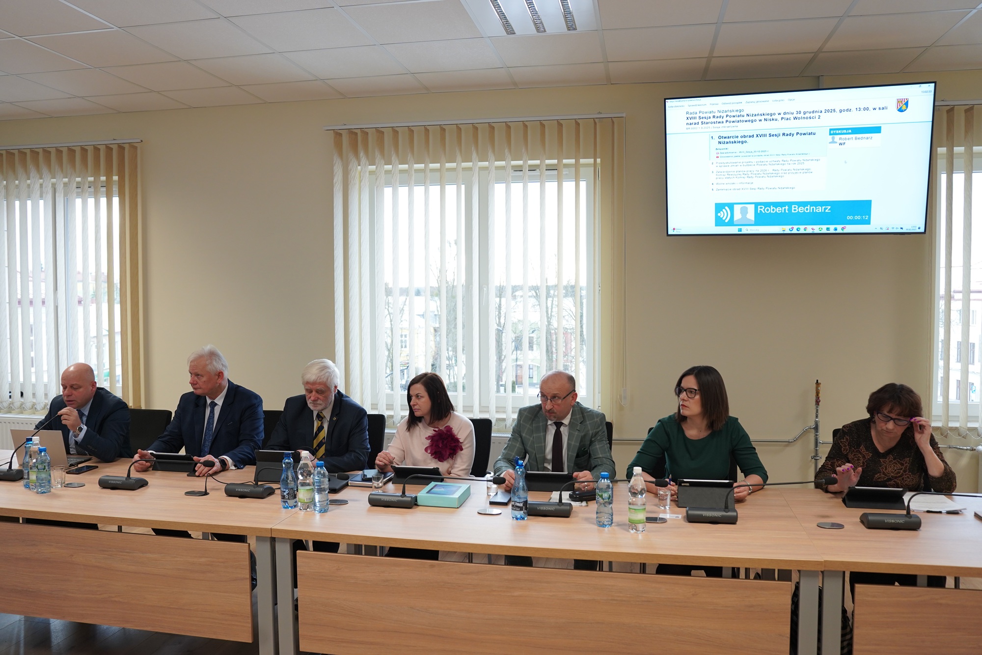 Dnia 30 grudnia 2025 r. w sali narad Starostwa Powiatowego w Nisku, odbyła się XVIII Sesja Rady Powiatu Niżańskiego, zwołana przez Przewodniczącego Rady Powiatu Niżańskiego Sylwestra Daśko.