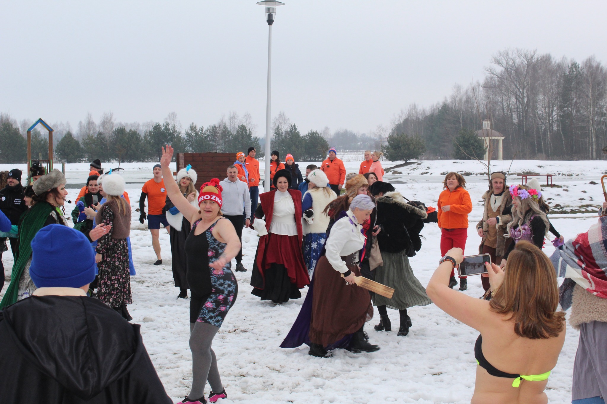 W zimowej aurze oraz w barwnych strojach w stylu chłopskim i szlacheckim, uczestnicy wzięli udział we wspólnej rozgrzewce i morsowaniu, pokazując, że dobra energia skutecznie pokonuje niskie temperatury.