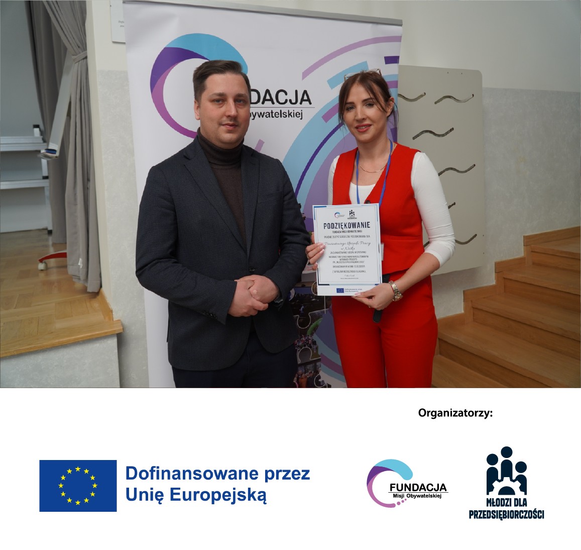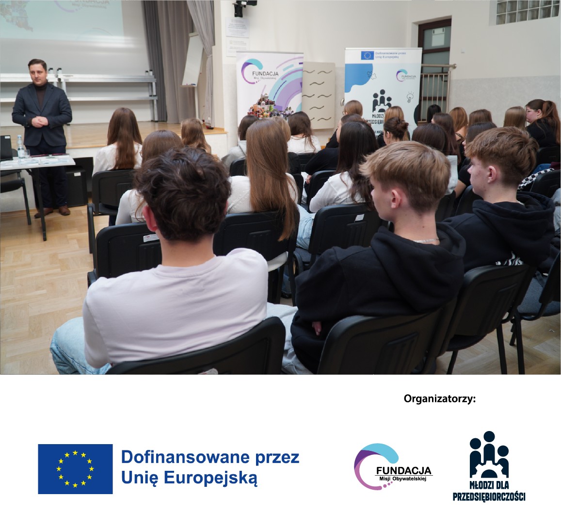 12 marca 2026 roku w Auli przy Liceum Ogólnokształcącym im. Stefana Czarnieckiego w Nisku odbyło się spotkanie informacyjno-szkoleniowe dla młodzieży z powiatu niżańskiego, zorganizowane przez Fundację Misji Obywatelskiej. Wydarzenie zostało zrealizowane w ramach dwóch projektów: „Młodzi dla Przedsiębiorczości”, finansowanego ze środków Unii Europejskiej w programie Erasmus+, oraz „Przystanek – Czas na Podkarpacką Młodzież! Edycja 2024–2026”, finansowanego ze środków Narodowego Instytutu Wolności – Centrum Rozwoju Społeczeństwa Obywatelskiego w ramach Rządowego Programu Fundusz Młodzieżowy na lata 2022–2033.