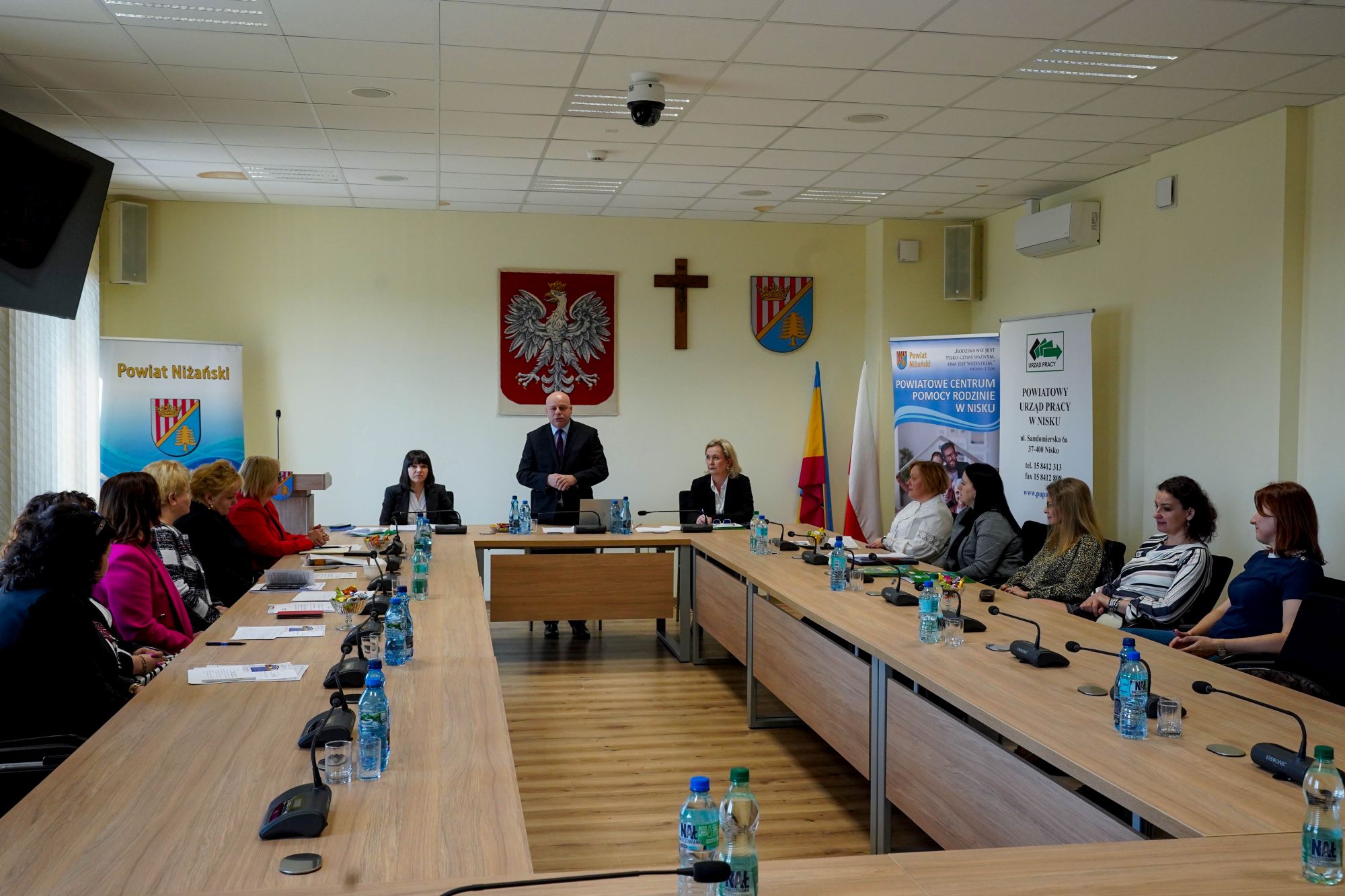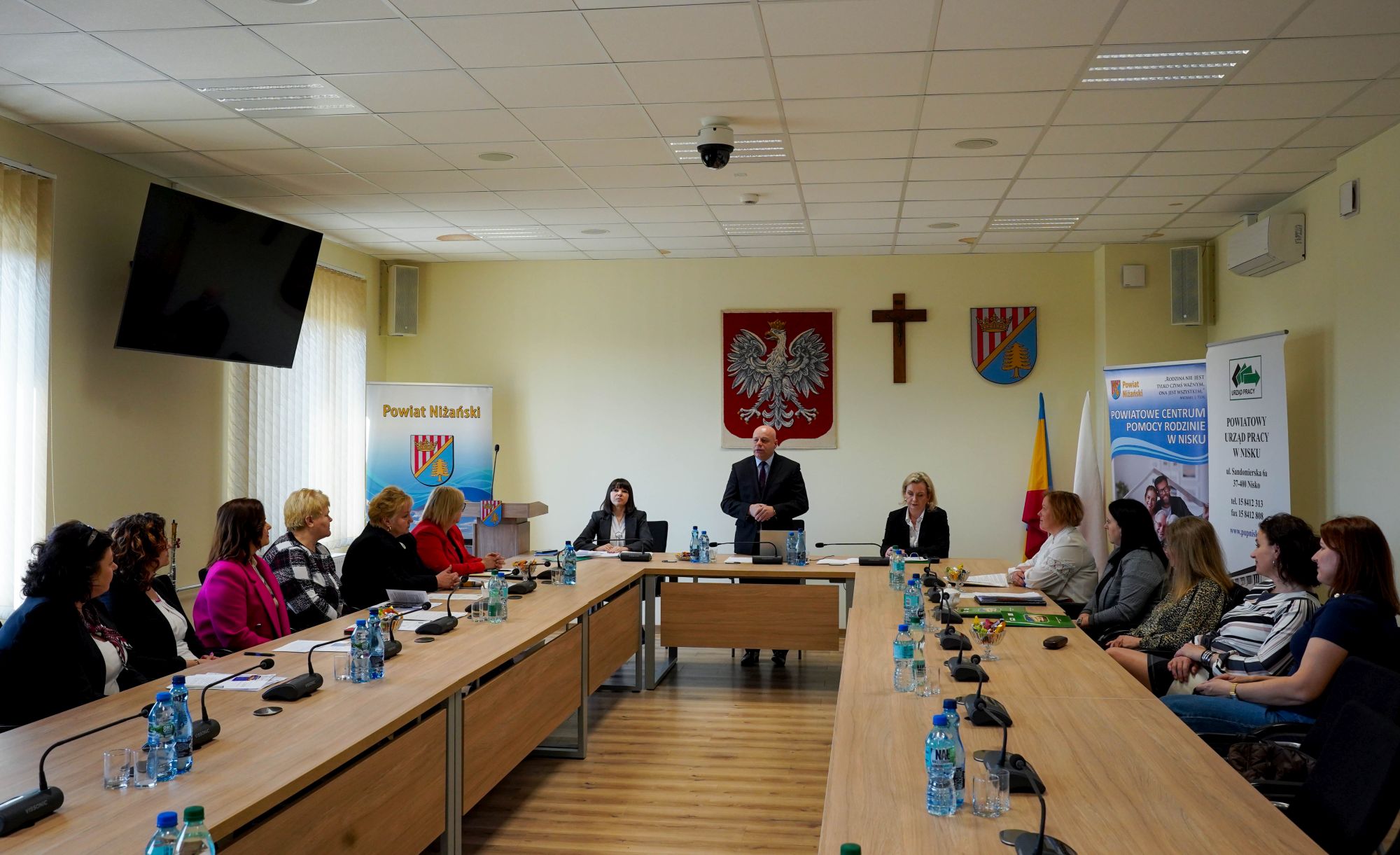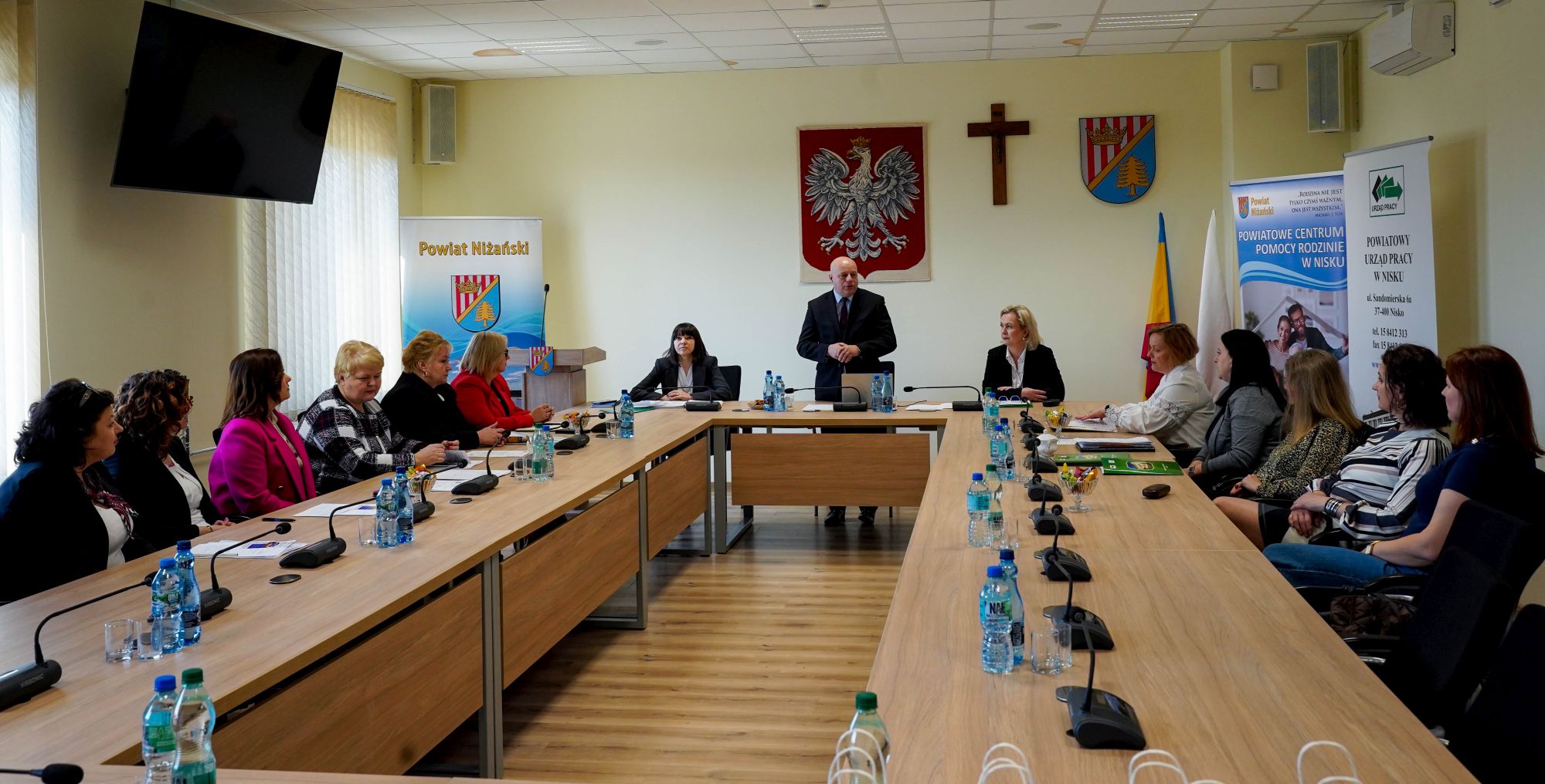 W piątek, 13 marca 2026 r., z inicjatywy Starosty Niżańskiego Roberta Bednarza, w siedzibie Starostwa Powiatowego w Nisku odbyło się spotkanie z kierownikami Ośrodków Pomocy Społecznej z terenu Powiatu Niżańskiego. Rozmowy dotyczyły budowania silnej sieci wsparcia, wymiany doświadczeń oraz zacieśniania relacji między jednostkami powiatowymi a gminnymi.
