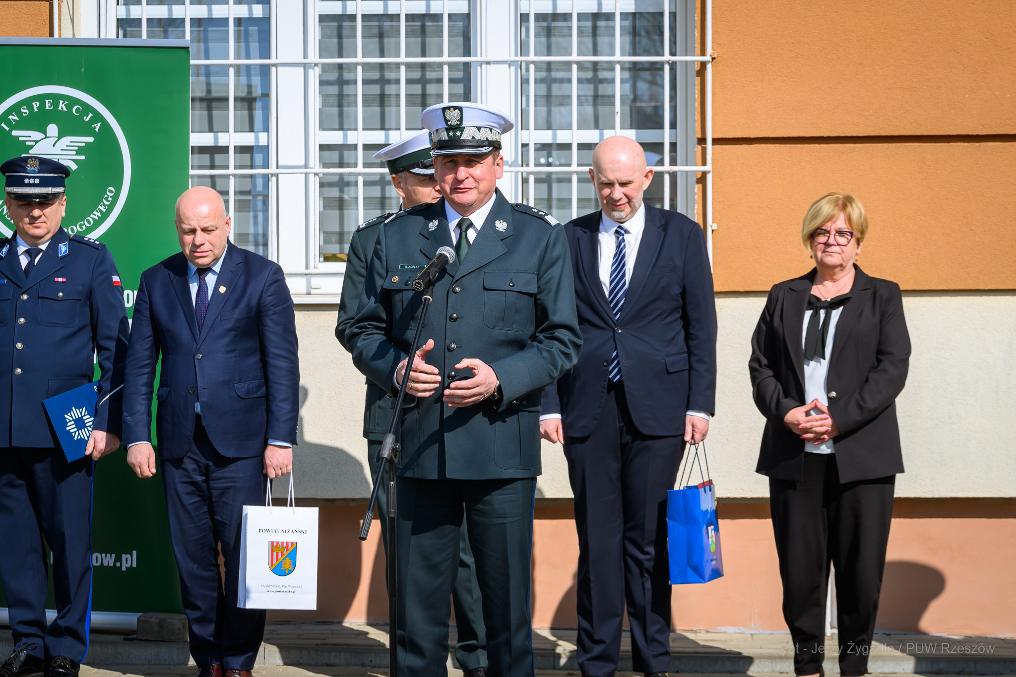 Symboliczne przekazanie kluczy zgromadziło liczne grono przedstawicieli administracji rządowej i samorządowej. W uroczystości uczestniczyli Wojewoda Podkarpacki Teresa Kubas-Hul, Główny Inspektor Transportu Drogowego Robert Koźlak, Starosta Niżański Robert Bednarz, Burmistrz Gminy i Miasta Nisko Konrad Krzyżak, Dyrektor Generalny GITD Łukasz Twardowski oraz Podkarpacki Wojewódzki Inspektor Transportu Drogowego Tadeusz Mik.