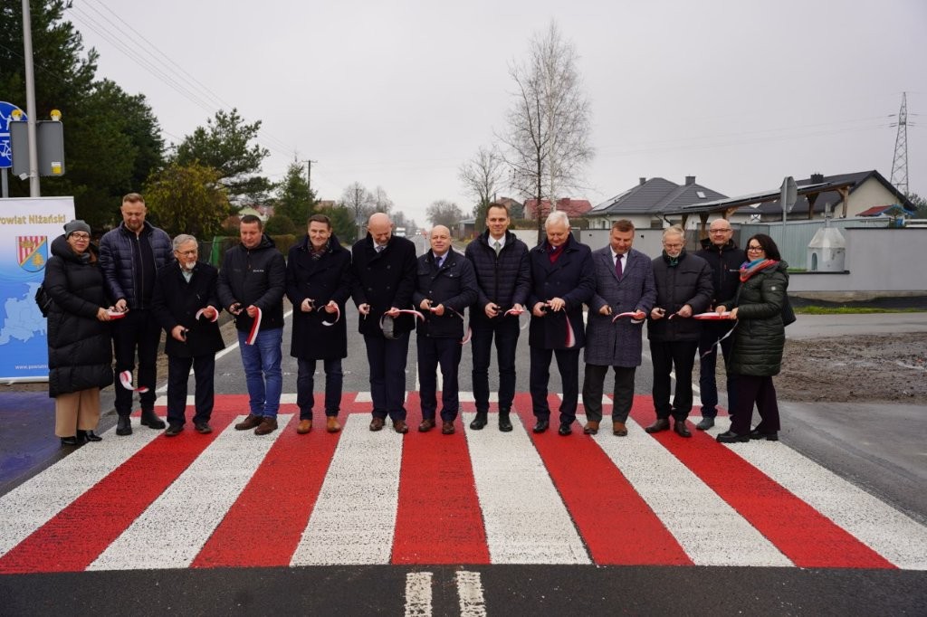 W obecności Posła na Sejm RP Rafała Webera, Starosty Niżańskiego Roberta Bednarz, Wicestarosty Józefa Sroka, Przewodniczącego Rady Powiatu Niżańskiego Sylwestera Daśko, Radnego Rady Powiatu Niżańskiego Benedykta Sudoł, Burmistrza Gminy i Miasta Nisko Konrada Krzyżak, Przewodniczącego Rady Gminy i Miasta Nisko Pawła Tofil, wykonawcy robót: Przedsiębiorstwa MOLTER Sp. z o.o z Głogowa Małopolskigo Prezesa Zarządu – Łukasza Molter, Kierownika Budowy Krzysztofa Błądek, w miejscowości Zarzecze dnia 11 grudnia 2025 r. odbył się uroczysty odbiór i przekazanie do użytku zadania pod nazwą „Przebudowa drogi powiatowej Nr 1019R Zarzecze – Pysznica – Rzeczyca Długa w miejscowości Zarzecze” współfinansowanego w ramach Rządowego Funduszu Rozwoju Dróg.