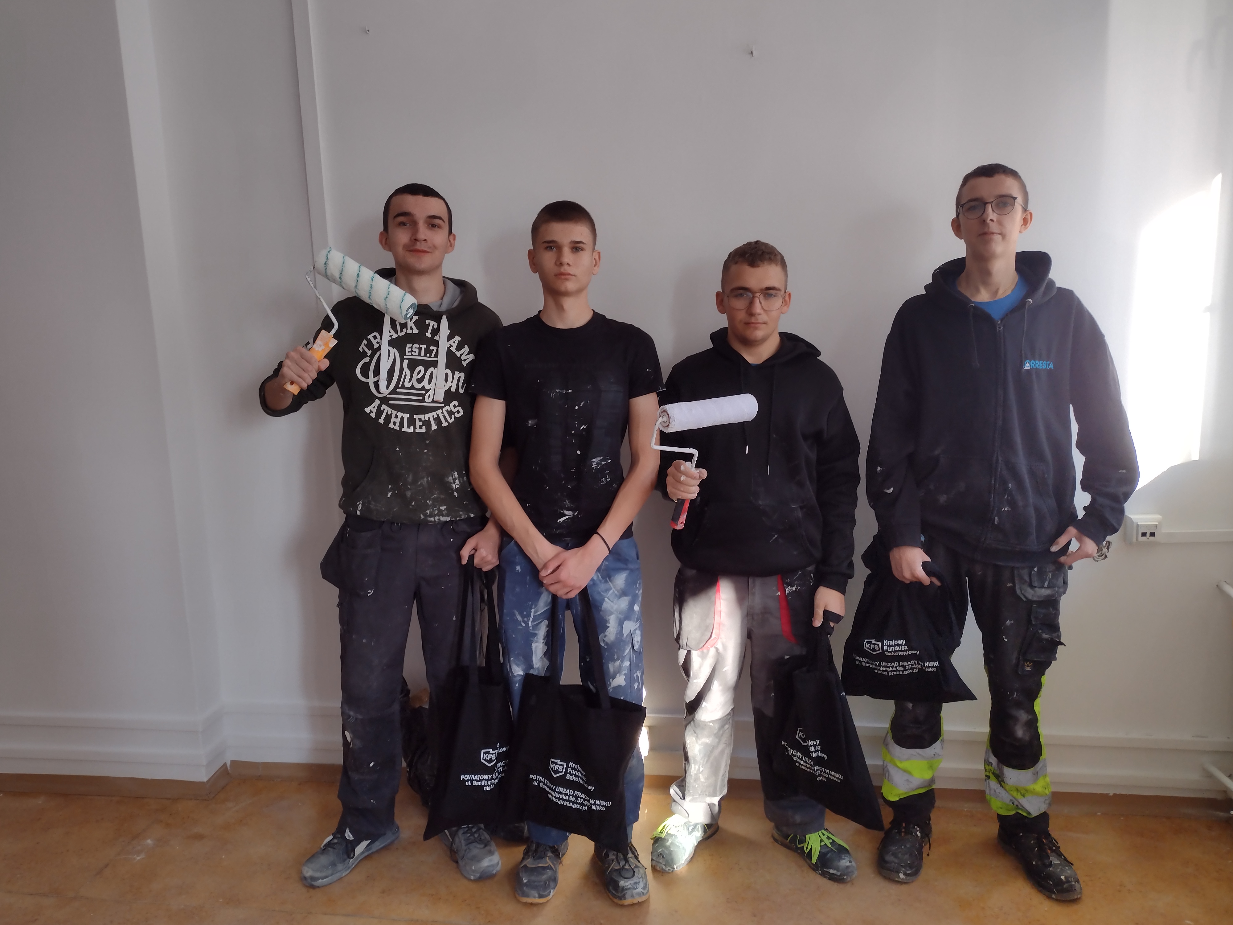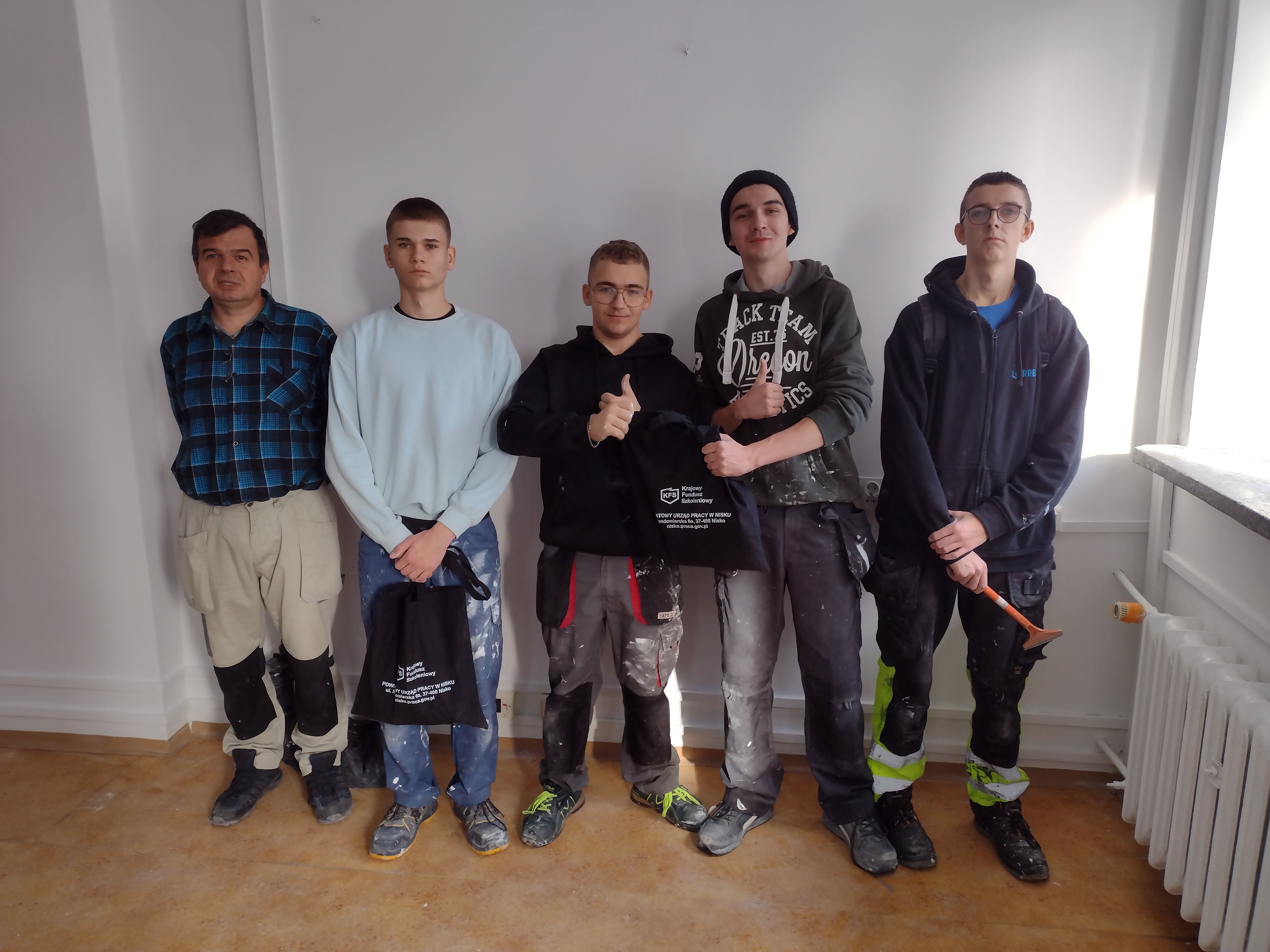 Uczniowie klas II i III technikum budowlanego Zespołu Szkół w Jeżowem im. ks. Stanisława Staszica, mieli okazję uczestniczyć w wyjątkowych zajęciach praktycznych, które odbyły się poza murami szkoły. W ramach kształcenia zawodowego młodzież zaangażowała się w remont pomieszczenia znajdującego się w siedzibie Powiatowego Urzędu Pracy w Nisku. Zakres wykonywanych prac był szeroki i obejmował m.in. naprawę ubytków w ścianach oraz suficie, odpowiednie przygotowanie powierzchni poprzez gruntowanie, a następnie staranne malowanie ścian i sufitu. Wszystkie czynności realizowane były zgodnie z zasadami sztuki budowlanej oraz z zachowaniem zasad bezpieczeństwa i higieny pracy.