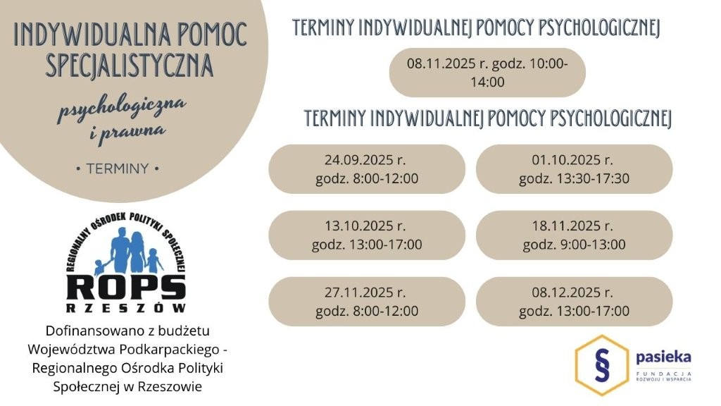 – pomoc psychologiczna (stacjonarnie): Rzeszów, ul. Hetmańska 4