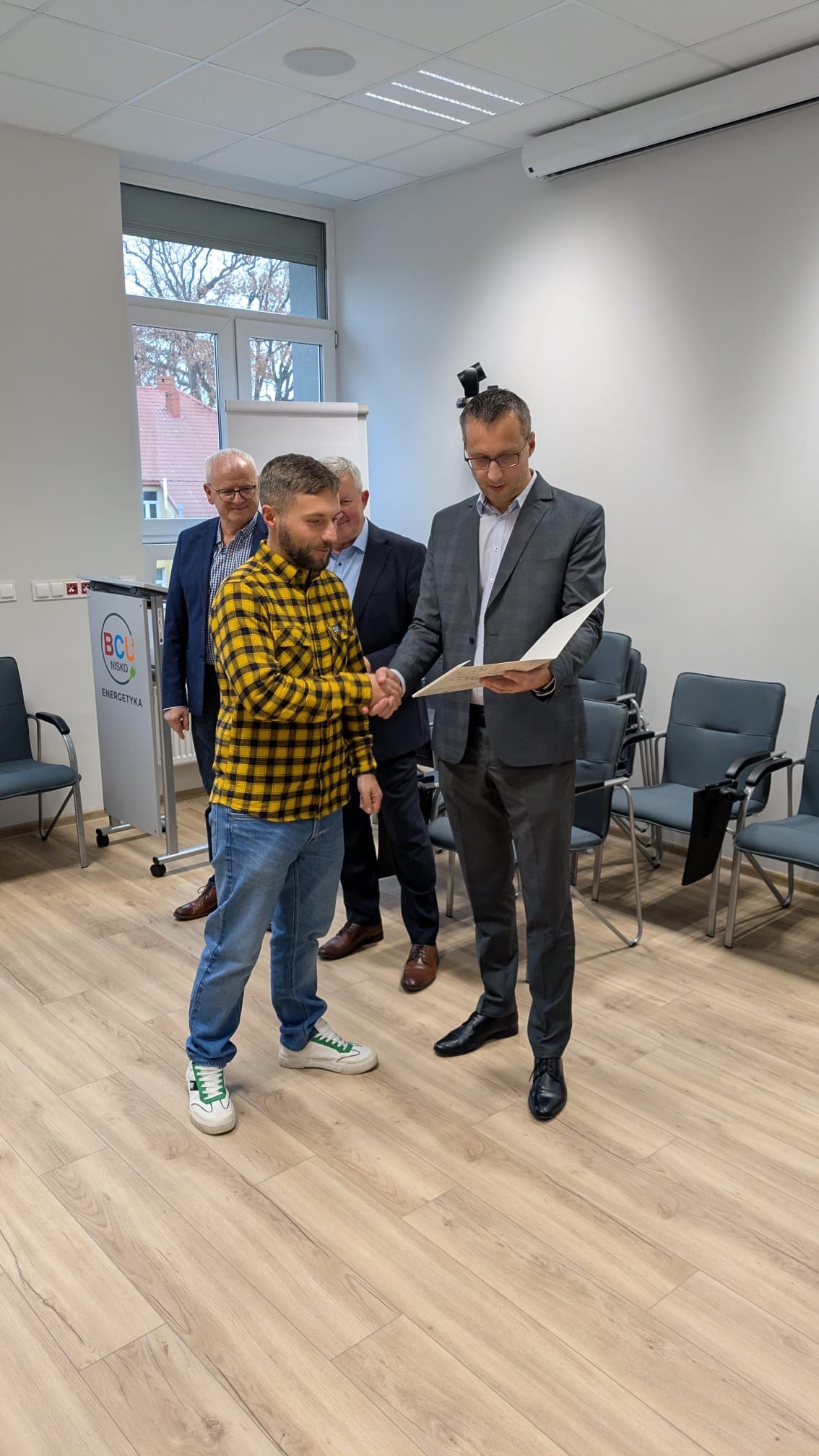 Po zakończeniu części walidacyjnej odbyło się wręczenie certyfikatów potwierdzających ukończenie branżowego szkolenia. Dokumenty te osobiście przekazał uczestnikom p.o. dyrektora BCU – Tomasz Skoczeń.