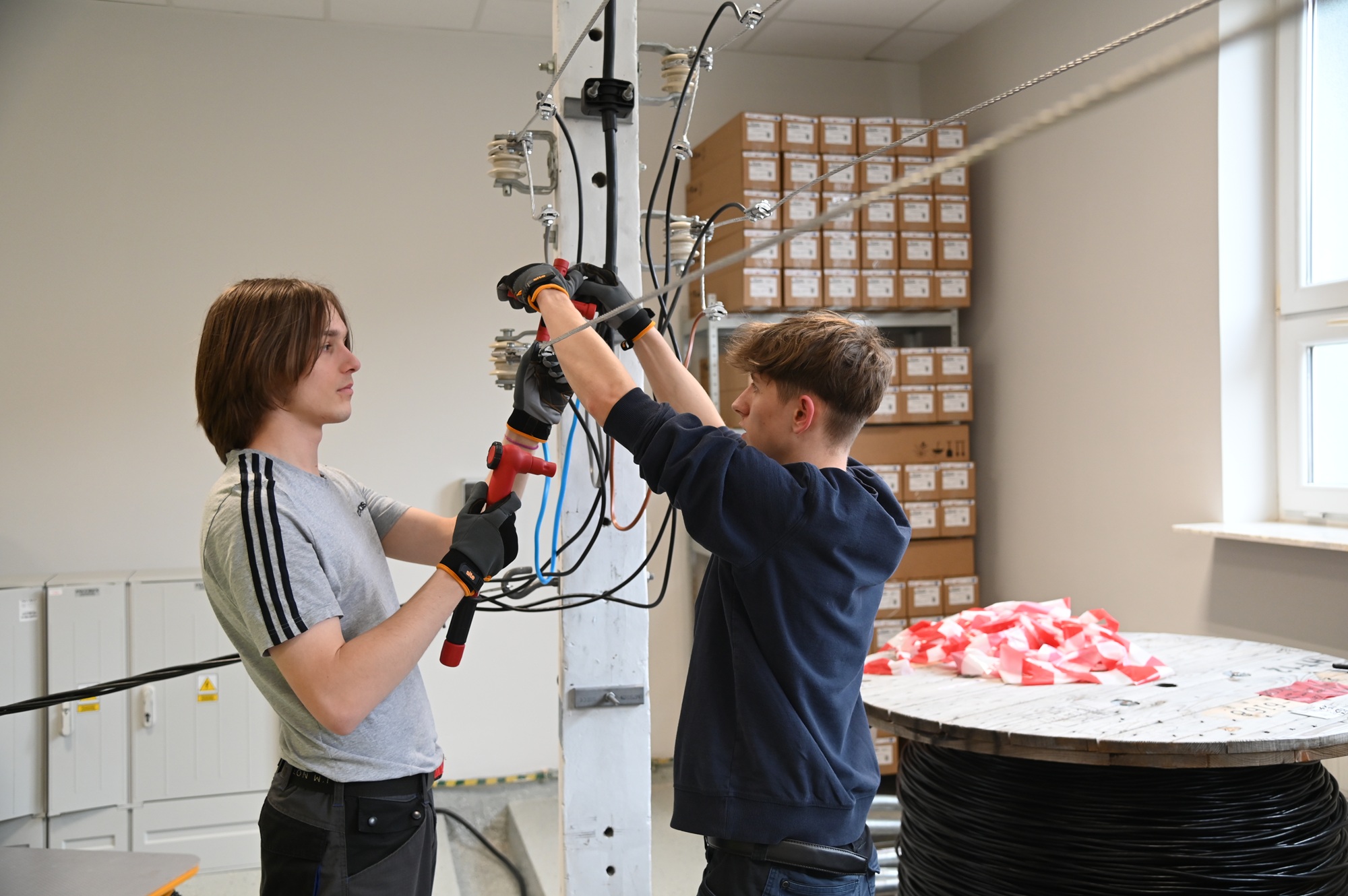 Finał konkursu rozegrano w ciągu dwóch dni rywalizacji – w dniach 26 i 27 marca br. Każdego dnia do zmagań przystępowały trzy zespoły, które musiały zmierzyć się z zadaniem praktycznym polegającym na wykonaniu przyłącza za pomocą kabli ASXSN na linii niskiego napięcia. Po wcześniejszej prezentacji prawidłowego przyłączenia przewodu przez ekspertów z PGE Dystrybucja S.A., uczestnicy samodzielnie realizowali zadanie obejmujące m.in. montaż elementów, zawieszenie i regulację przewodów, identyfikację żył oraz wykonanie trwałych i bezpiecznych połączeń.