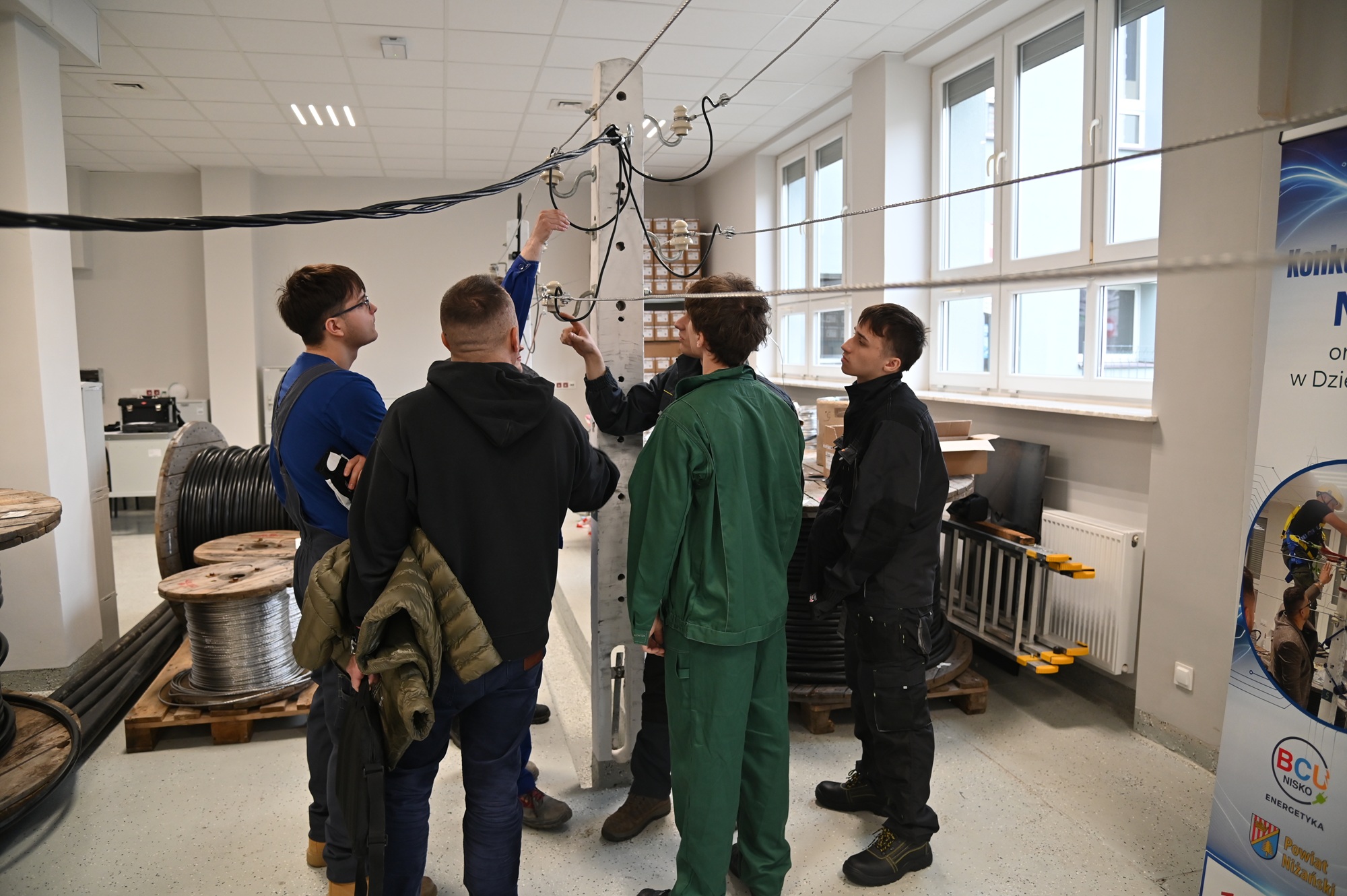 Zadanie realizowane było w warunkach pracowni dydaktycznej odwzorowującej rzeczywiste elementy sieci elektroenergetycznej, co znacząco podniosło poziom trudności i realizmu. Ocenie podlegały nie tylko aspekty techniczne, ale również organizacja pracy, estetyka wykonania oraz przestrzeganie zasad bezpieczeństwa.