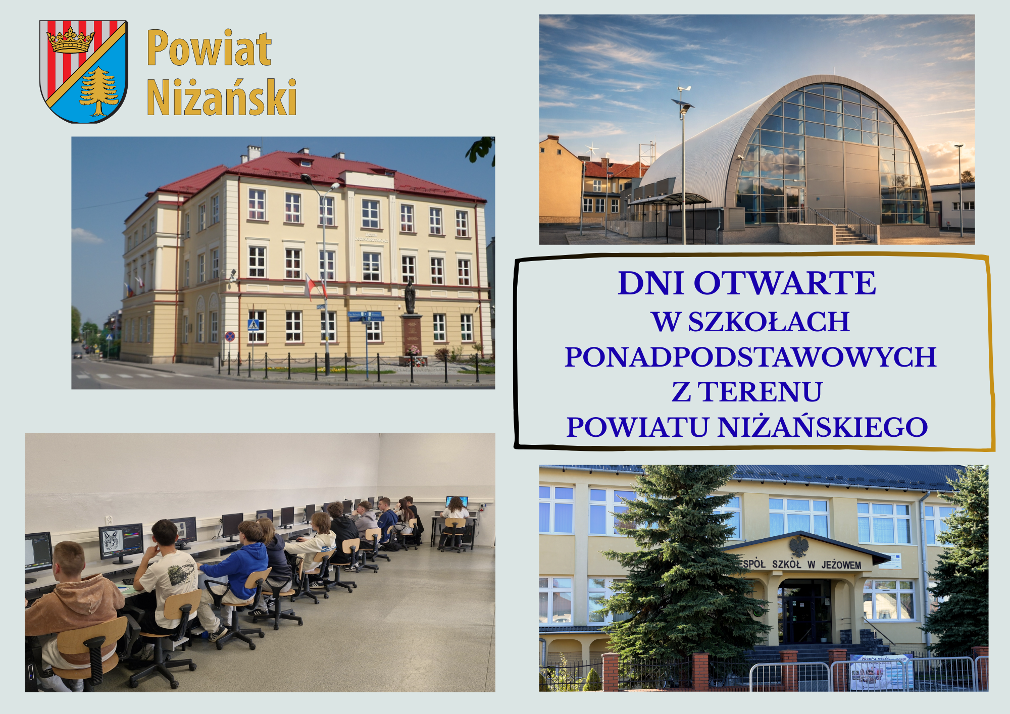 W związku ze zbliżającą się rekrutacją do szkół zapraszamy wszystkich ósmoklasistów oraz ich rodziców do udziału w Dniach Otwartych organizowanych przez szkoły ponadpodstawowe z terenu Powiatu Niżańskiego.