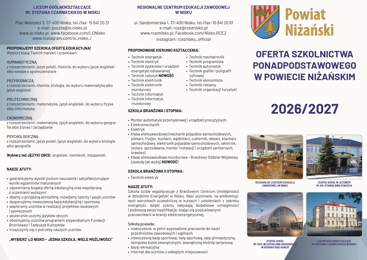 Liceum Ogólnokształcące im. Stefana Czarnieckiego w Nisku: https://www.lo.nisko.pl/rekrutacja/index.php