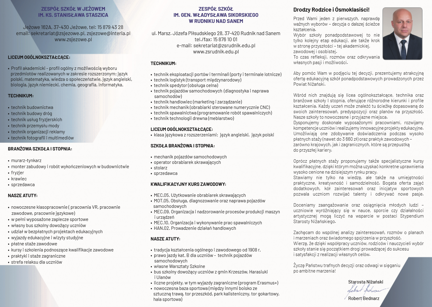 Zespół Szkół w Jeżowem im. ks. Stanisława Staszica: https://zsjezowe.pl/index.php/uczen/rekrutacja